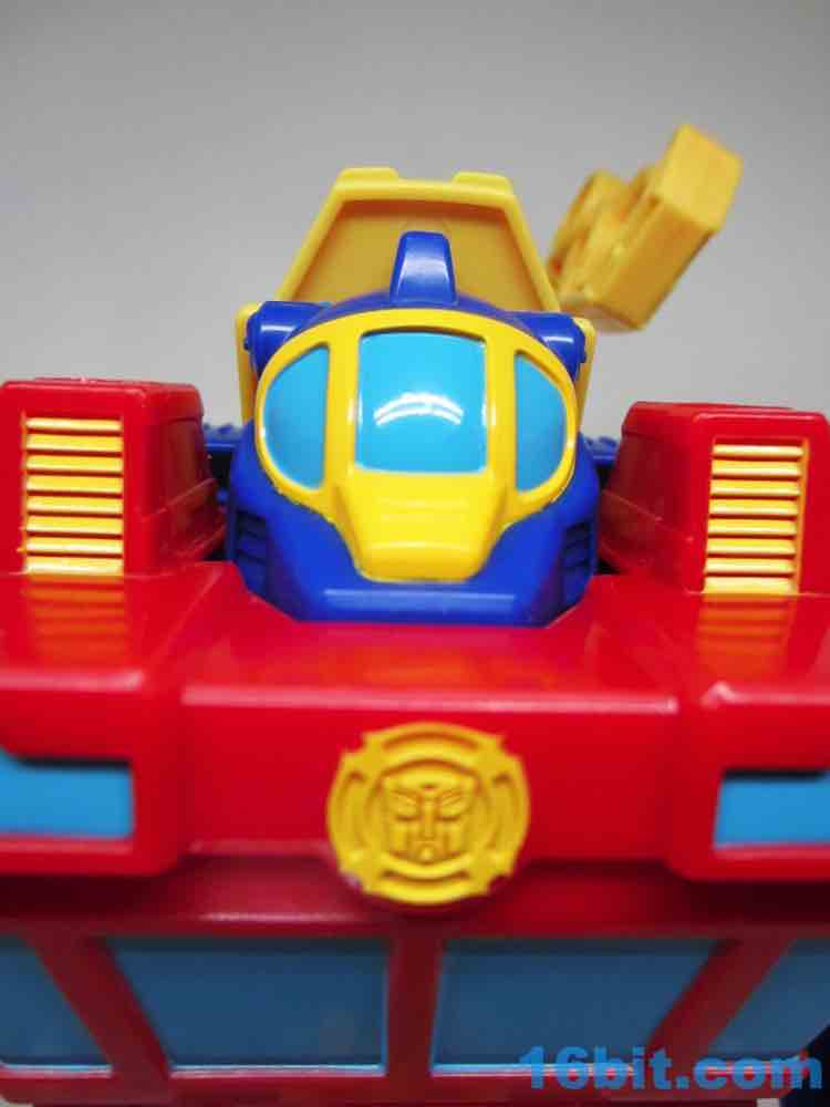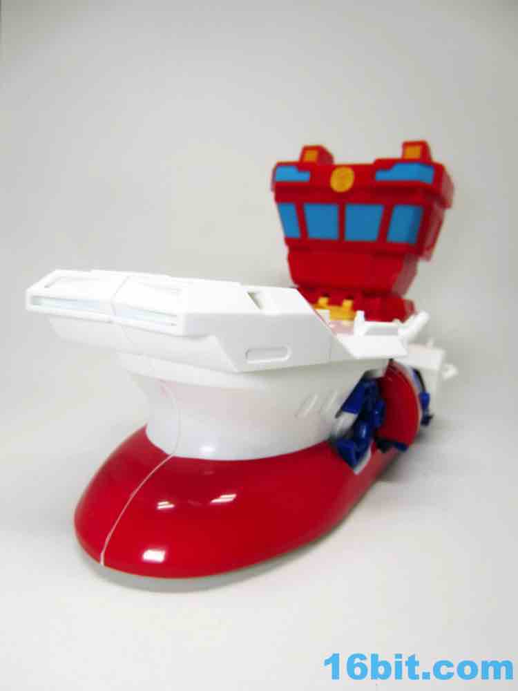 The boat is a boat! Of course it is - what else would it be? High Tide is a little too big for most Rescue Bots toys, but you can see places to put smaller figures on the deck of the ship. The claw mounts to the front, and you can use it to pretend to pull guys out of the water. He has rolling wheels so he can move around the ocean that is a table, so it's actually a pretty great toy.