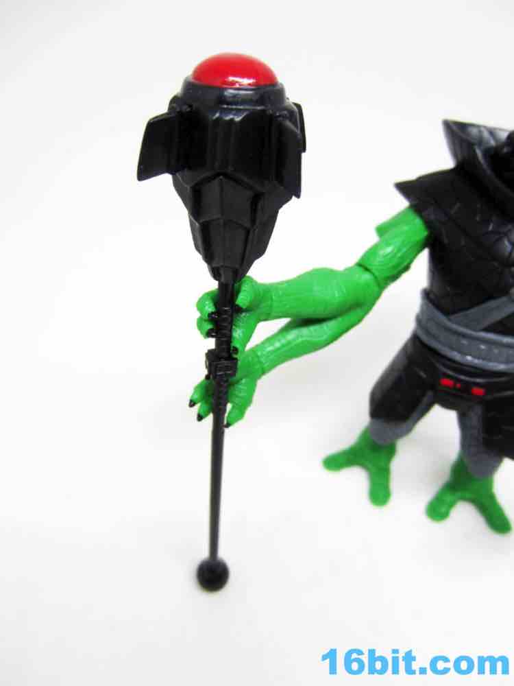 The figure has a nifty mace that can help prop him up, and it has a red cap on top of the staff's head. The head can be removed from the staff if you're so inclined, and you can swap it out with a short handle staff if you want. It's an option, but it's a boring one. If you only got one staff part, you wouldn't be left wondering why you didn't have an option - if anything, it's another piece for the junk drawer.