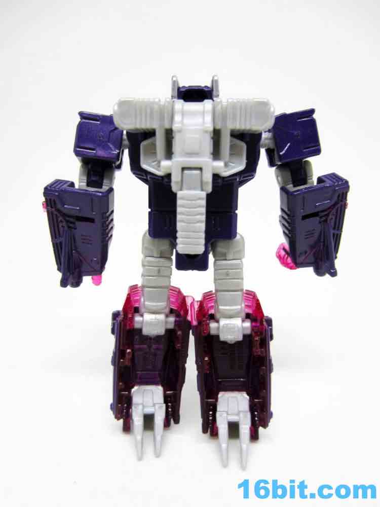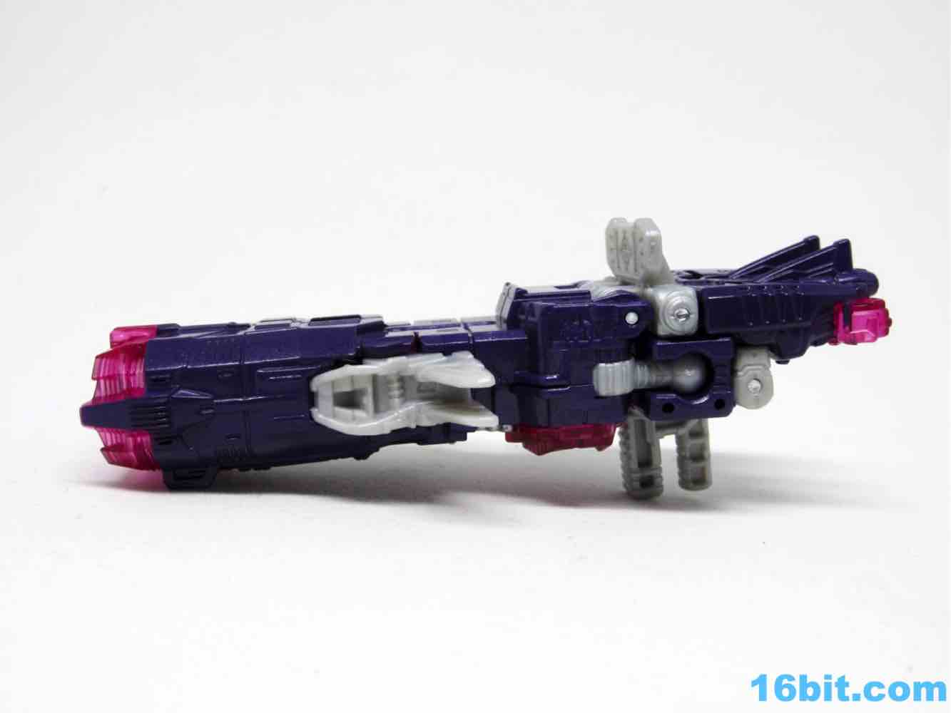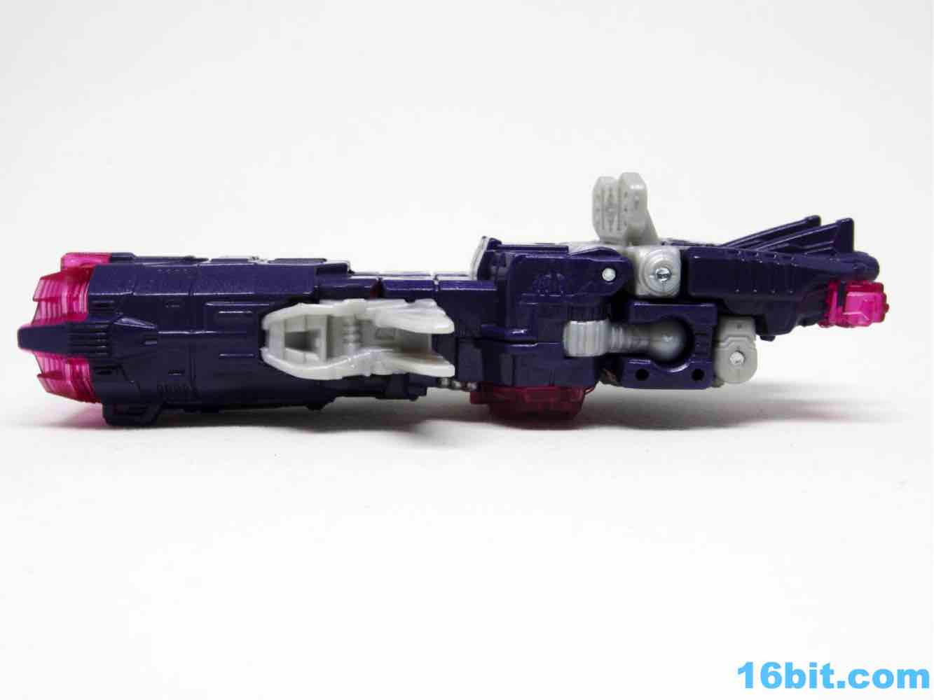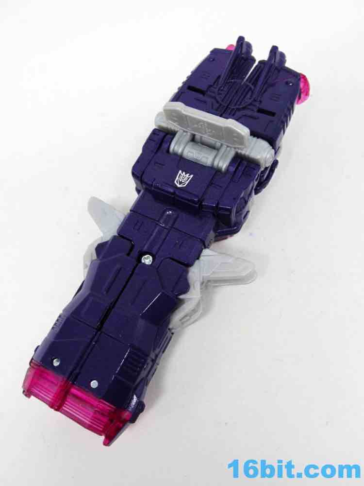 The weapon mode is a cross between his original gun mode and some sort of space satellite thing. It's neat unto itself, but it's not a proper update for the original toy largely because of it not being large. It has a unique grip which can fold up for "ship mode," and a special design created specifically to fit in the Combiner Wars hands. The vehicle/weapon mode itself is acceptable, but unremarkable. It has an opaque targeting sight on top, which I like, and they made clever use of his knees as the barrel of the cannon - or vice-versa. Either way. I quite like the clear pink bits, but the feet hanging off the sides of the ship just look goofy. Compared to Powerglide [FOTD #1,153] it's a more convincing weapon.