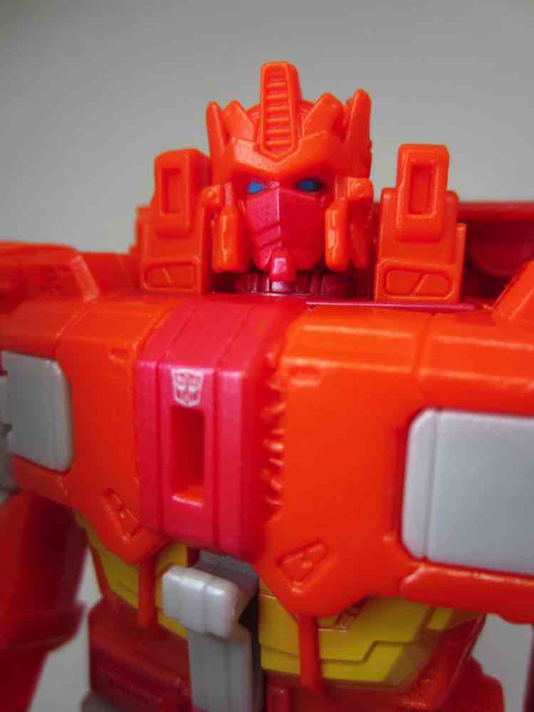 The Titan Master gimmick means you have a little robot that becomes the head - and in this case, it's a tight fit. Too tight. I had to take a file to the neck socket after taking some pictures, and I might have to file it down some more because it really is just that tight. It's a great idea, but just be aware you may need to put in some effort to make it the best that it could be because it is seriously, sincerely, a very tight fit.