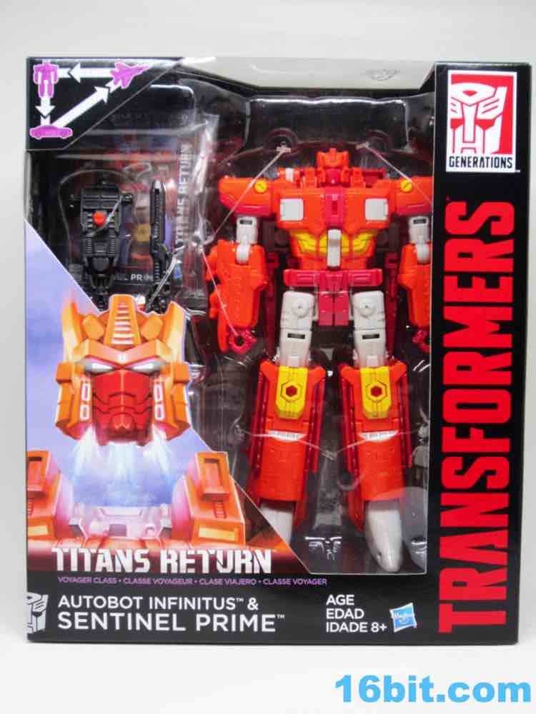 Item No.: Asst. B7769 No. B6459 Manufacturer:Hasbro Includes:Autobot Infinitus, 2 blasters, card Action Feature:Transforms from head to robot, also robot to train to space shuttle to robot Retail:$24.99 Availability: June 2016 Other: Retooled as Astrotrain