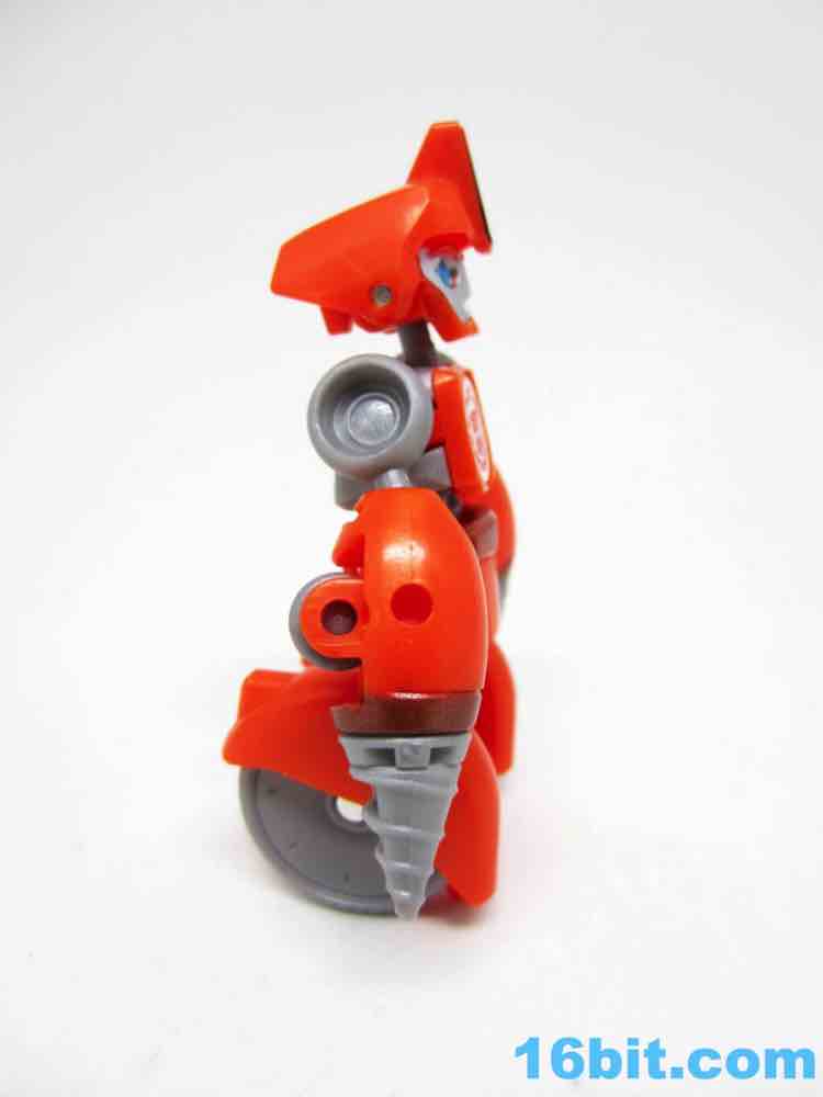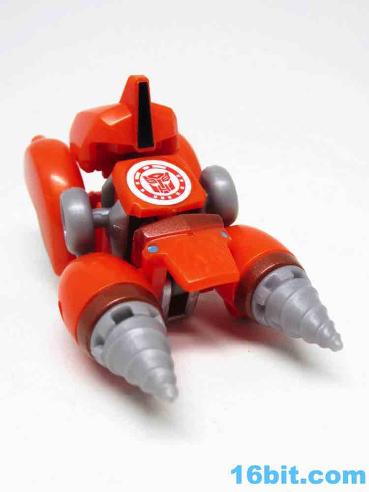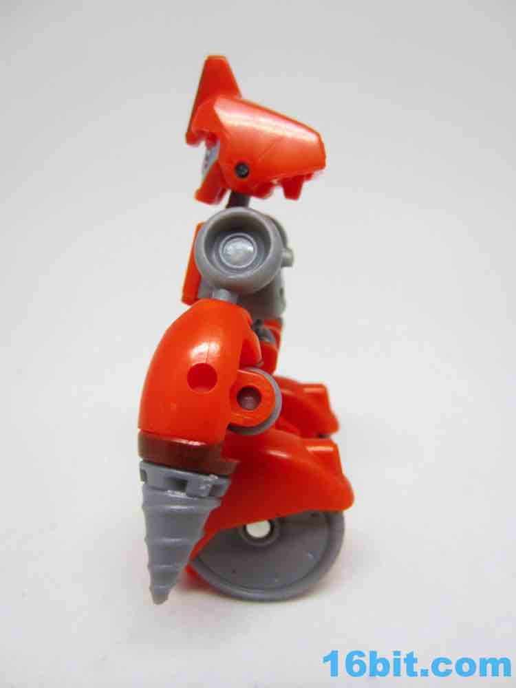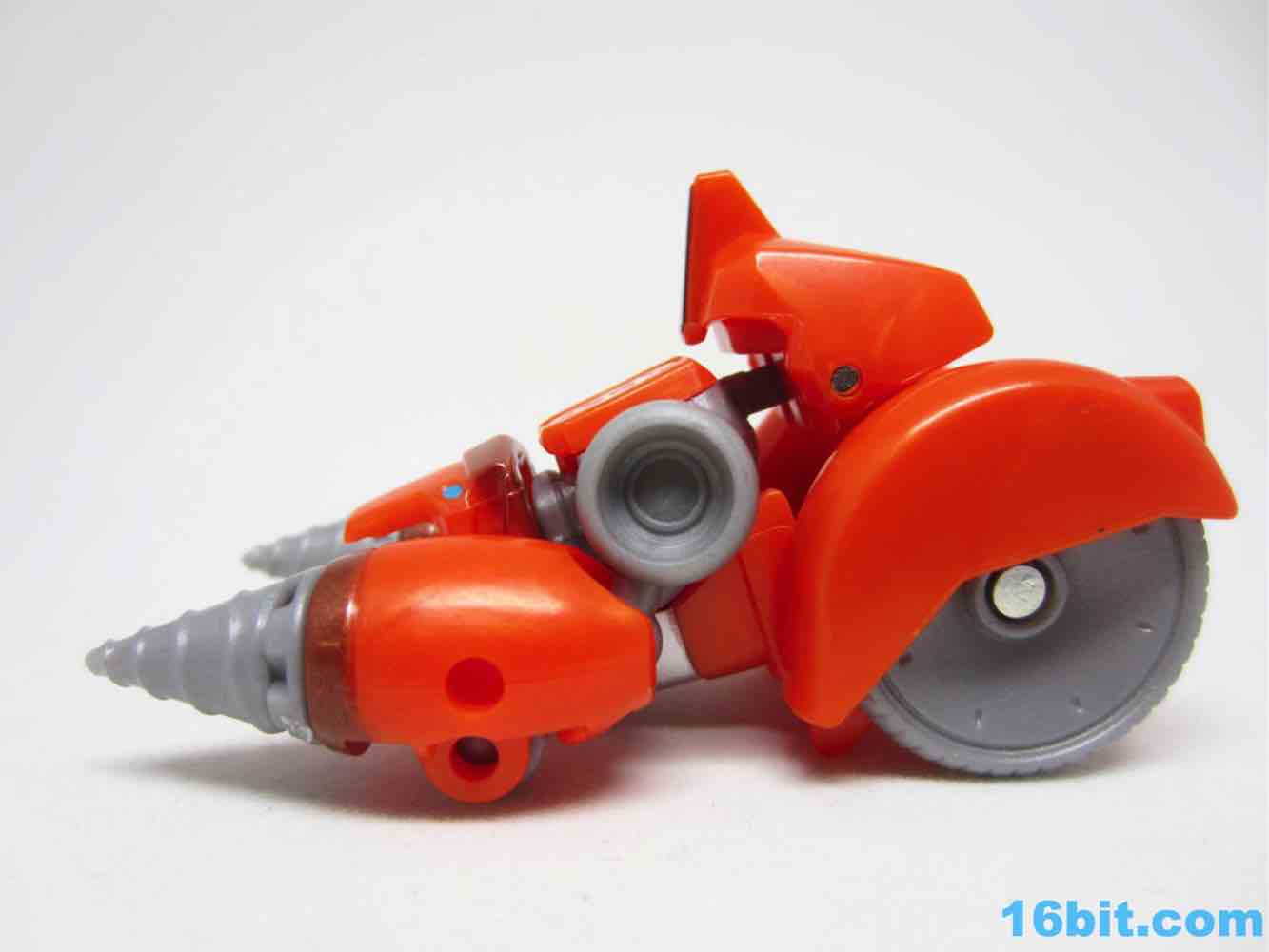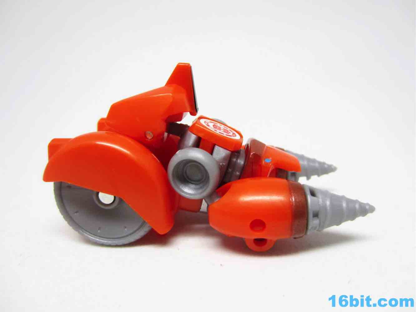 To turn into the little drill vehicle mode, he just sort of collapses upon himself complete with tabs to put the arms in place. It's kind of nice, but the vehicle mode is one of those "it's a vehicle because I say it is" modes. It's sort of a drill tank, but not really. I assume you'll never want to use the vehicle mode unless you're compulsively needing to display your entire collection in their alt modes. It's not terrible, nor is it unfun, but it's just... well, look at it. It's no robot. There's a fun bit in the transformation where the face folds up inside the helmet - it's really something!