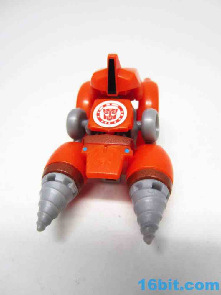 The 2 1/2-inch figure is quite possibly one of the best all-around figures in this particular line. I don't say that lightly. They got a lot in to the figure, even though the alt mode is sort of a bore, the robot is amazing. "Expressive" is a good word - Hasbro rarely manages to come through with a figure that is capable of just so much body language, let alone one this small. There are multiple ball joints that have nothing to do with articulation, plus there are several joints in the torso which do wonders for making him assume whatever pose you see fit. He can slouch, stand at attention, point, and whatever else your imagination allows. With his big goofy (and Hasbro logo-esque) grin, this is the mascot toy you may be dragging your feet on, but will secretly love.