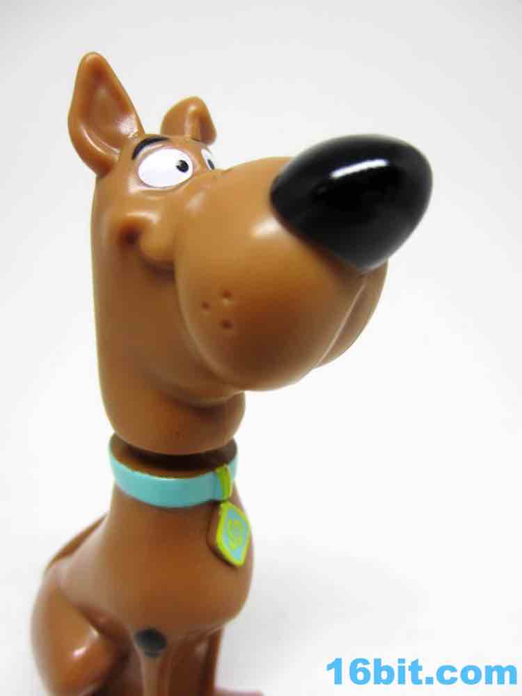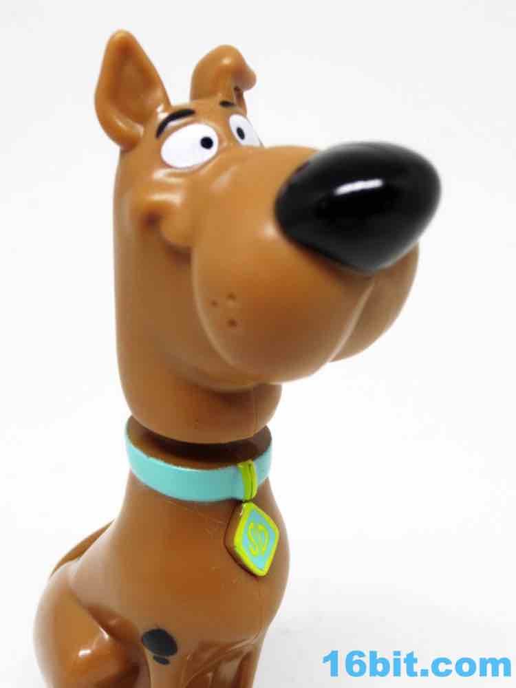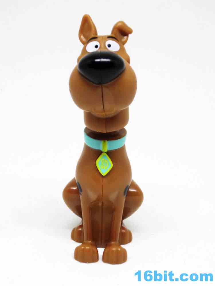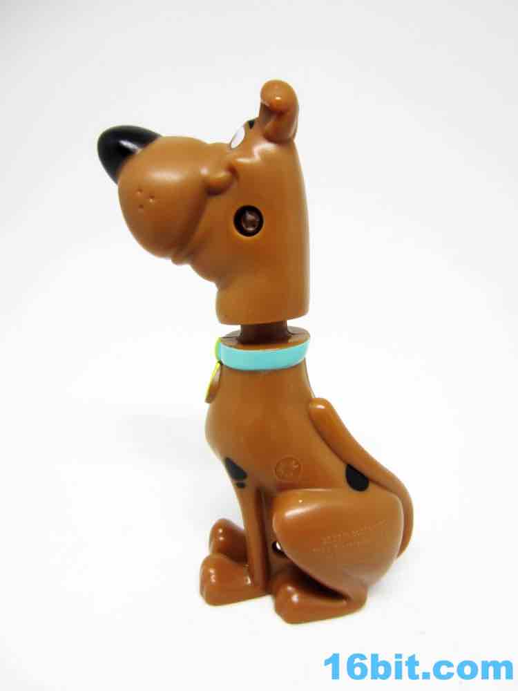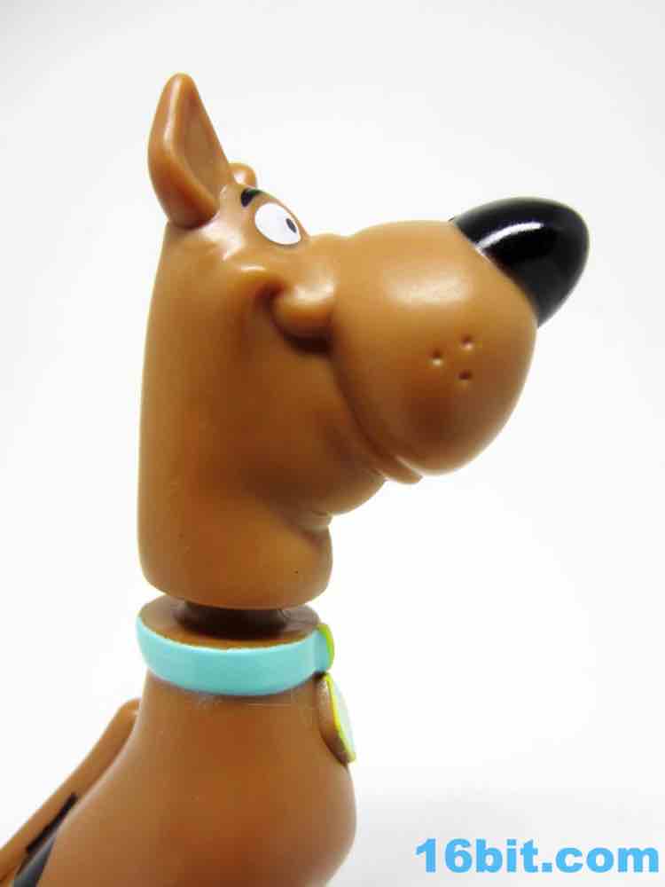 The dog is brown with black spots, sculpted smoothly with a crooked smiles and bright, wide eyes. His ears are a little goofy as per usual, and his muzzle is huge. I mean, disturblingly huge. They did a nice job getting that grin just right, and his body proportions are true to how he looks in your imagination. Other than a couple of screw holes to hold him together, the figure is free of blemishes. A small but strong spring in the head allows for limited bobbling and wobbling, which makes me almost wish they included an adhesive pad for the bottom so you could slap it to your dashboard. But then again, this was made for children.