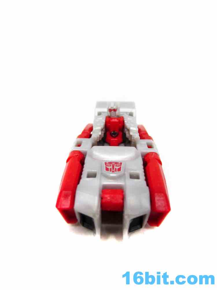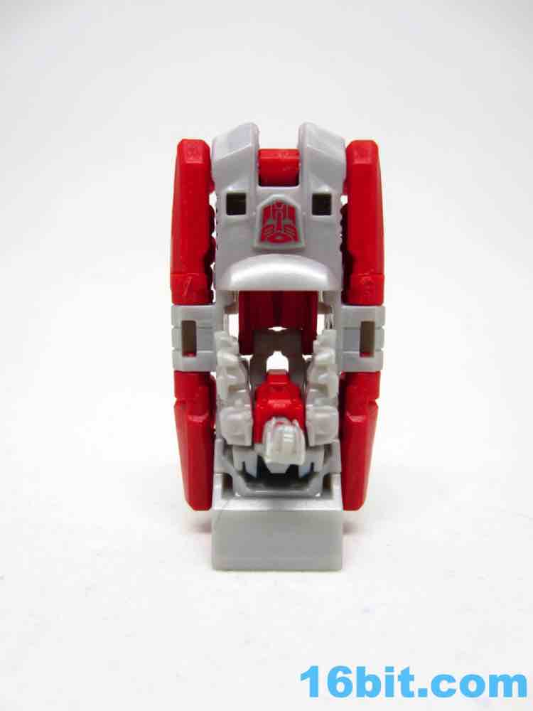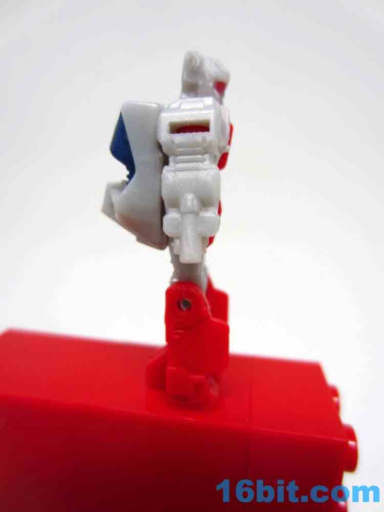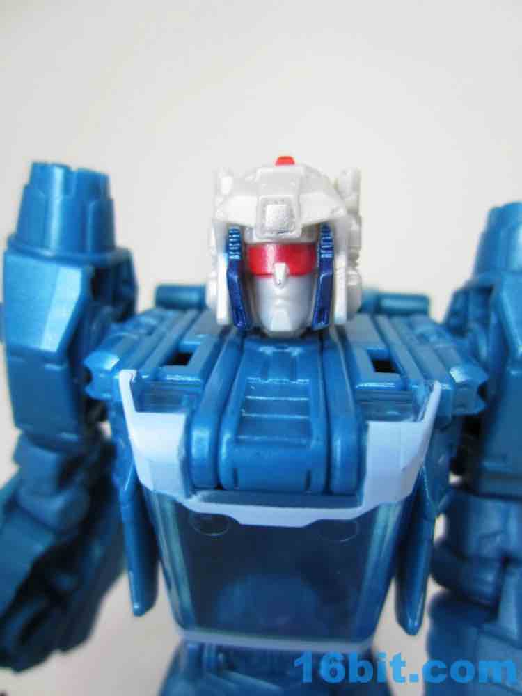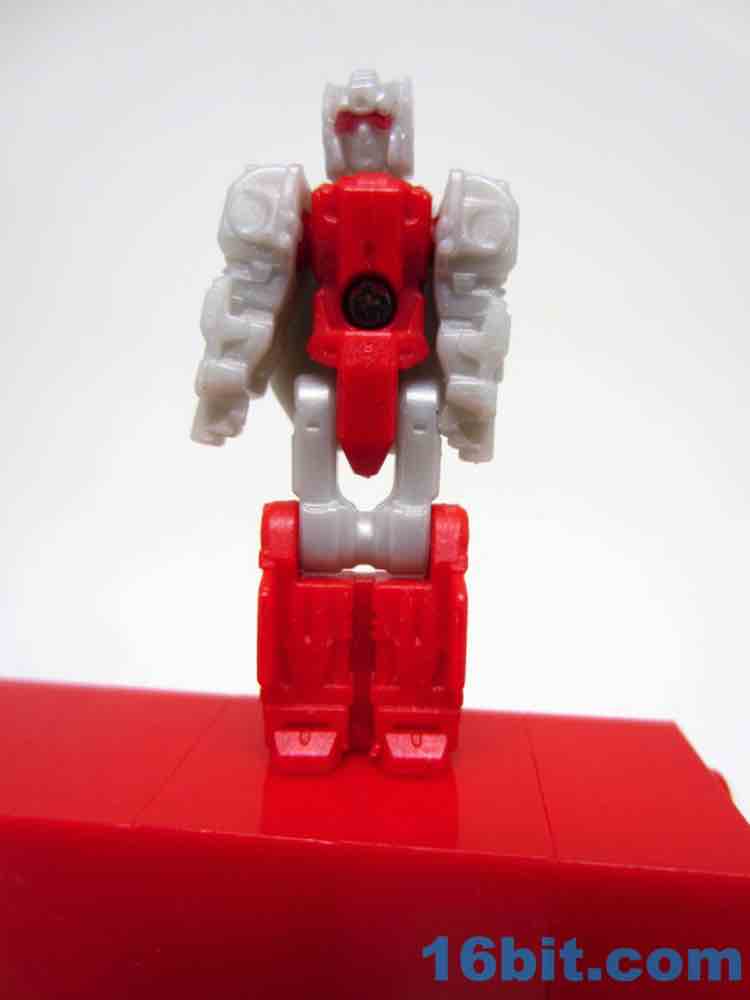 This 1.5-inch robot is one of the smallest (if not the smallest) robot I've gotten out of this line since... possibly ever. (I didn't have any of the original Headmasters.) It's nifty and small, easy to transform from robot to head. The tiny robot's head has a tiny red painted visor, but no other visible deco. The head turns, and the arms are on little ball joints. The figure has jointed hips and knees, which is more than a little amazing when you're a Star Wars collector and they phased such things out.