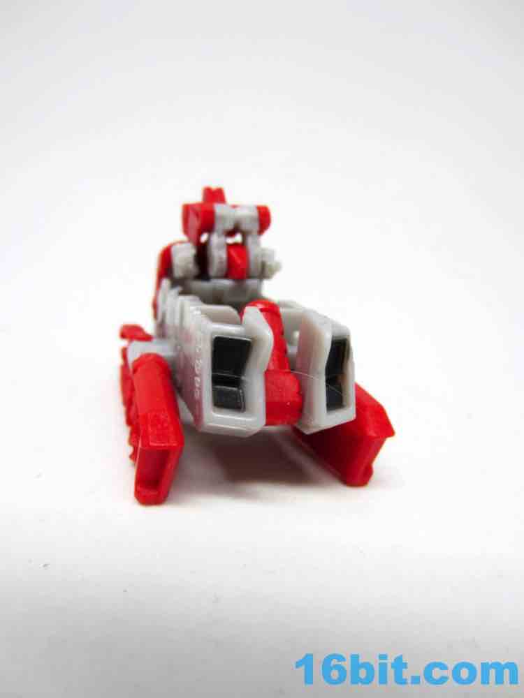 His head mode looks a lot like the original Siren, complete with red visor and blue highlights on the sides of the helmet. The face is no longer blue, and the guns on the side of the head are no longer actual guns - they're just his mini robo arms. If you had a body for him, this would be a largely very good noggin on his shoulders. My only gripe is that the grey plastic is the kind that sort of absorbs detail - the light goes in and muddies an exquisite sculpt, through no fault of Hasbro or Takara-Tomy or whoever. It's just not the best grey. It's a nice enough head, and smaller than Voyager-class Brainstorm [FOTD #1086] from 2014. As such, the Headmaster elements are not cross-compatible.