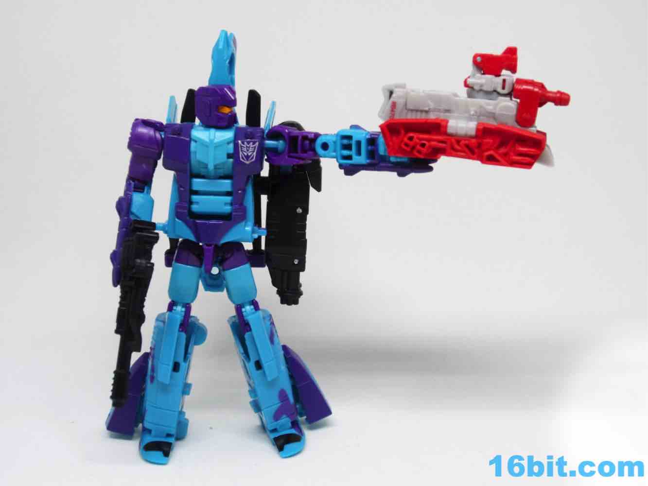 The gun mode... it's not bad. Loudmouth plugs in as a head, just rotate him around and it's a decent fit. It's a perfectly nice/weird gun for Voyagers and larger toys, but it's not exactly sized right for my Deluxe toys. I wouldn't suggest buying this one on the strength of the weapon mode - but everything else is pretty excellent.