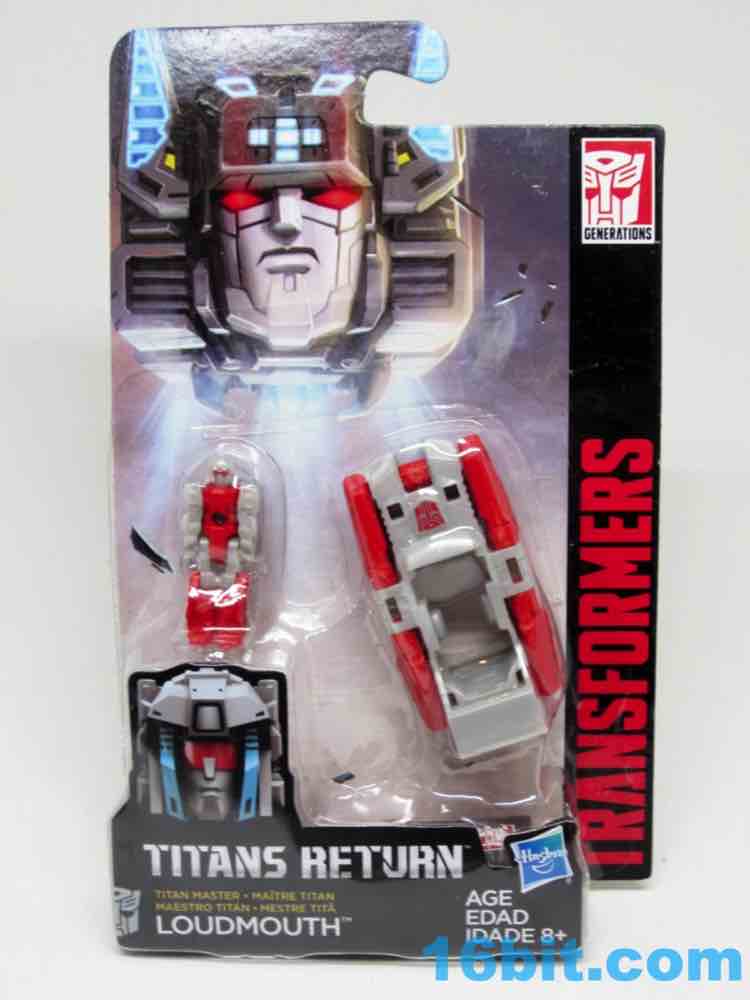 While brand new, the play pattern of Titans Return is known to us. The central gimmick is you can pop off a head and turn it into a driver for the vehicle (or beast) mode, and the "Titan Masters" price point - new to Generations - gives you a head and a weapon for bigger robots. Patterned after Siren (aka Nightbeat's comic book model) Loudmouth gives you a head for a custom, or possibly a future deluxe toy (so says the rumors I don't believe).