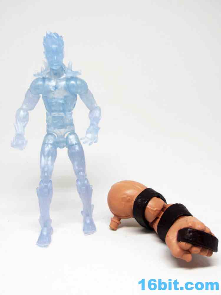 The 6-inch action figure is cast in clear, milky blue plastic with virtually no paint. The buck has some icicle bits here and there, but when you get right down to it this is a naked Spider-Man clone with icy bits and painted white eyes. With no accessories, I assume it also helped to keep costs down on a rather robust wave packed with build-a-figures and a bunch of cool accessories. Iceman is an exception for the wave, but short of some sort of snow surfboard thing I don't know what else you might want to throw in here.