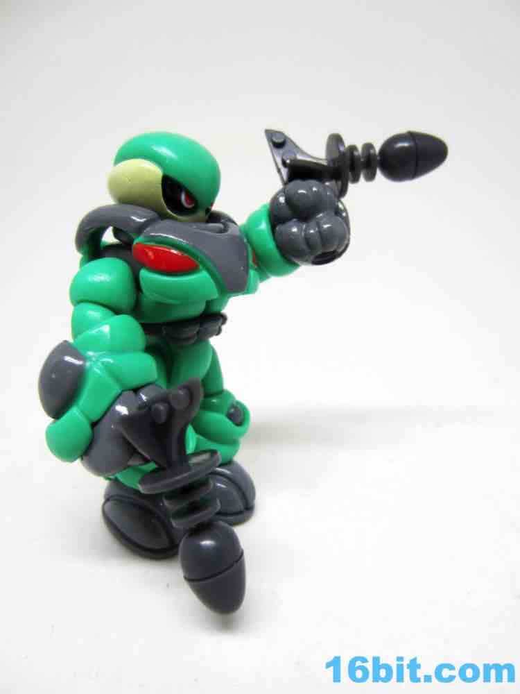 The default build is basically an armored-up version of the classic figure using the Clone head. A vest/armor (or "scarf") was added, as are new pieces to cover the wrists and ankles to give it a completely different look. If you don't like that look, alternate arms and legs are also present in the packet to do whatever you want. The figure is molded in a gorgeous green color and adds grey accents plus some swell red bits on the body. Black, white, and red were added to the eyes on a bone and/or green head - depending on which one you go with for your displays.