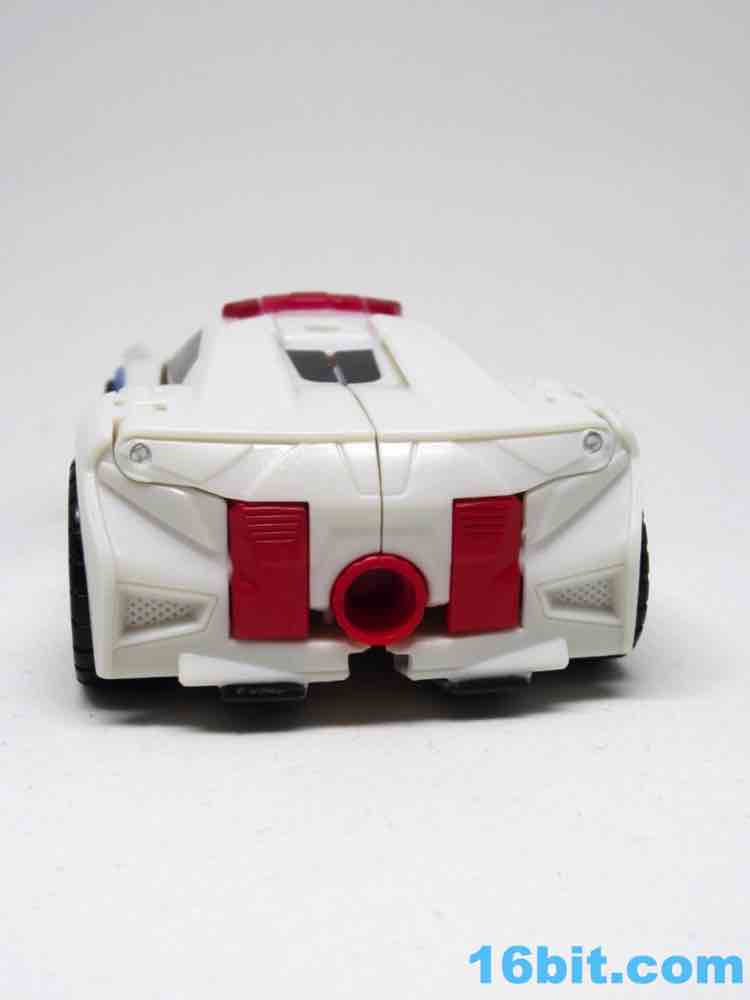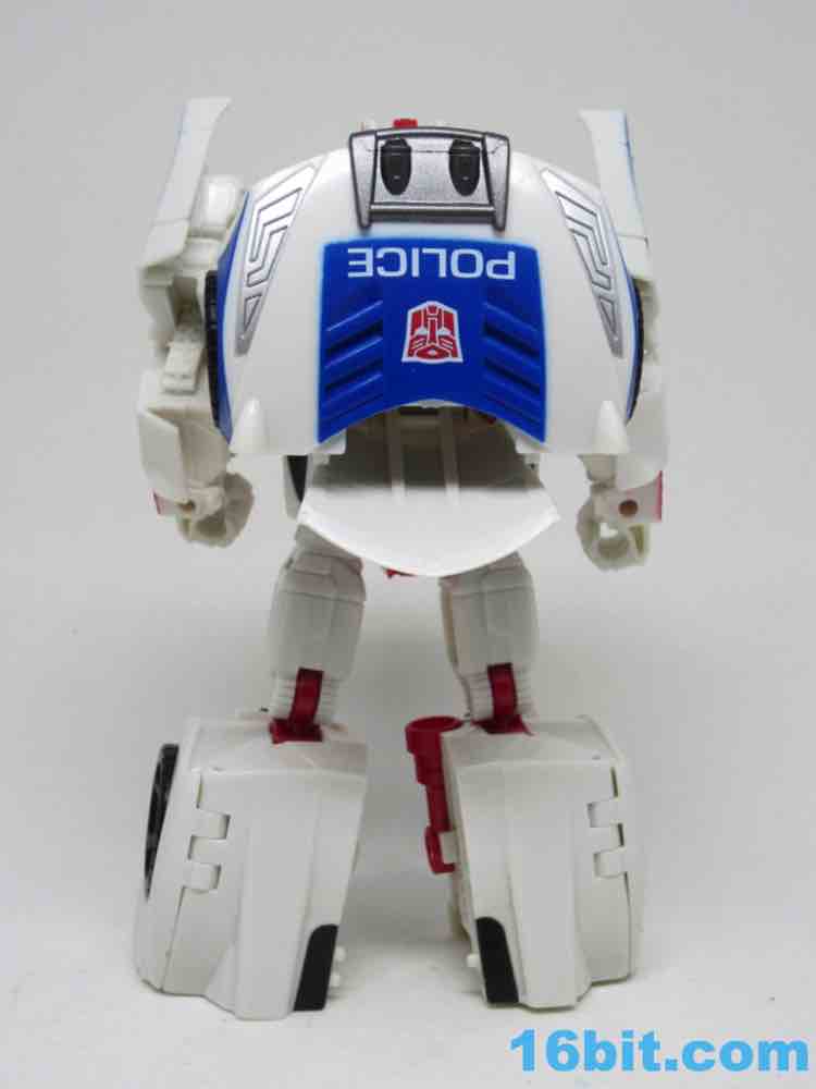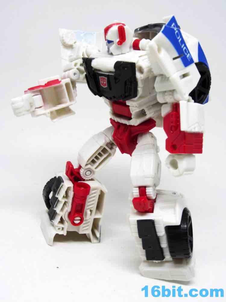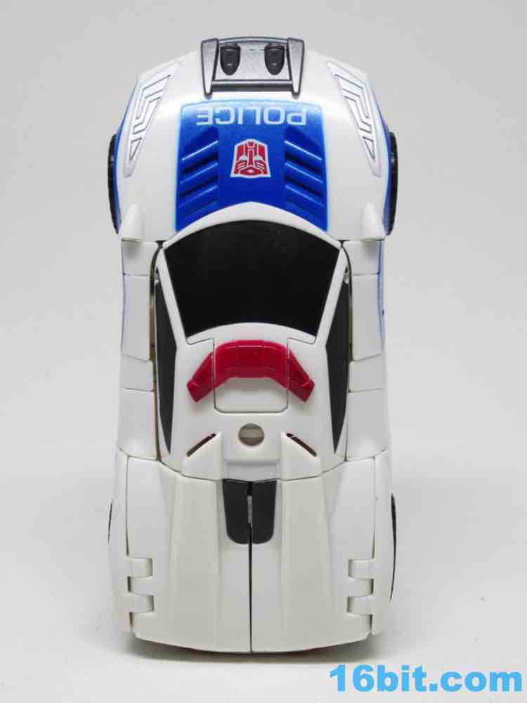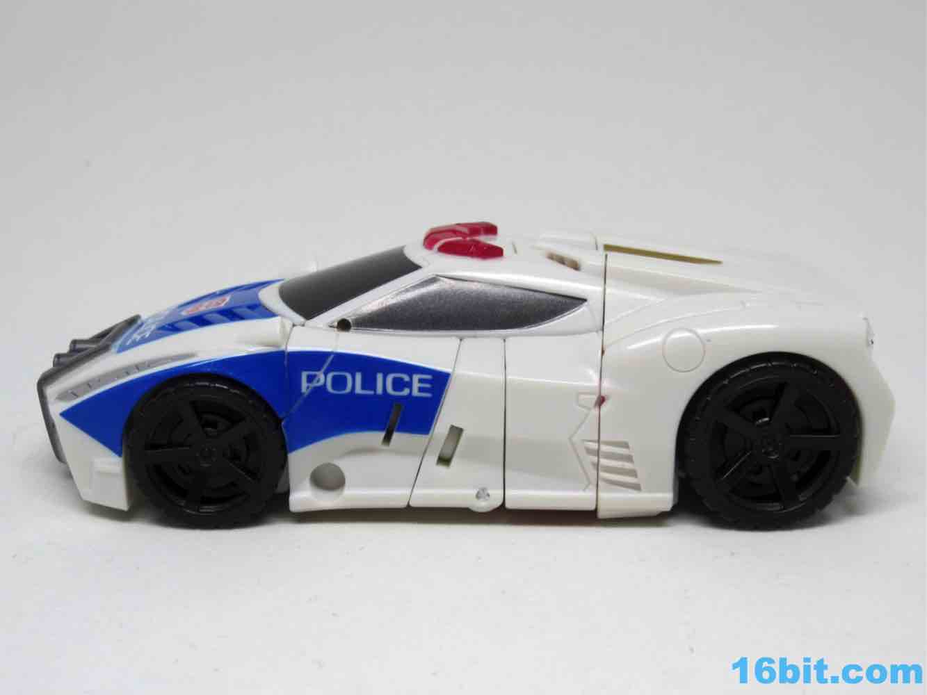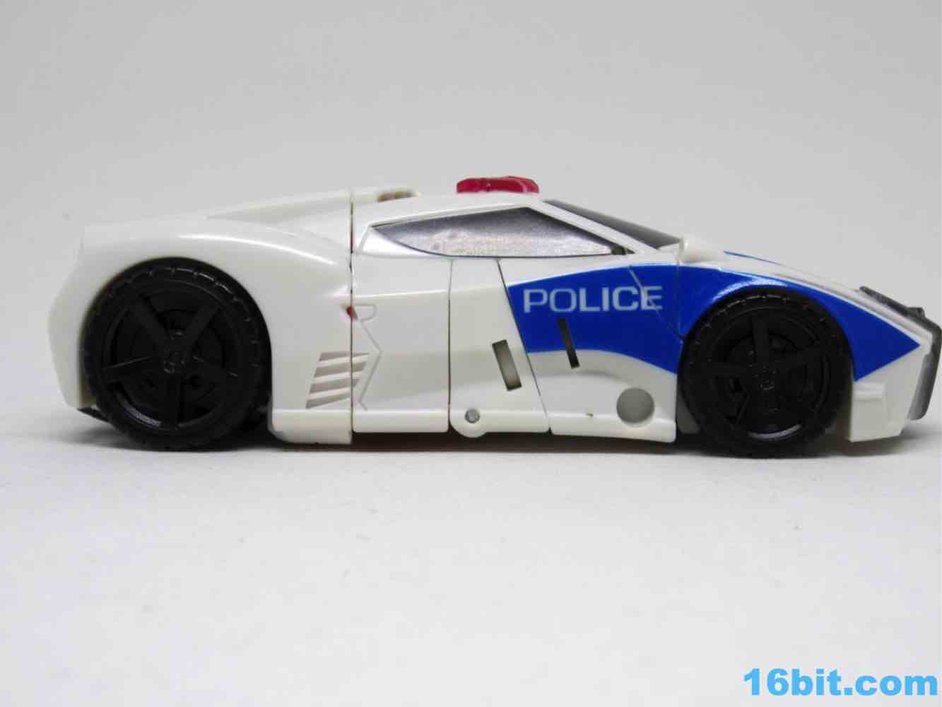 The transformation is nothing new, but the car is - they kept the red lightbar, but lost the big stars. We also saw added "POLICE" markings and some blue bits on the front half of the cruiser, which makes for a nice bit of updating to what could have been a slightly more boring looking toy. Of course, the blue is largely hidden in combined mode, so you'll probably never actually see it long enough to enjoy the extra mile to which Hasbro's deco team went to not bore you.