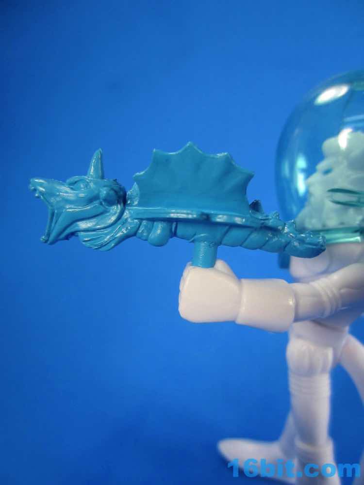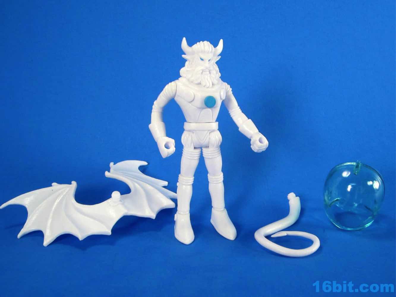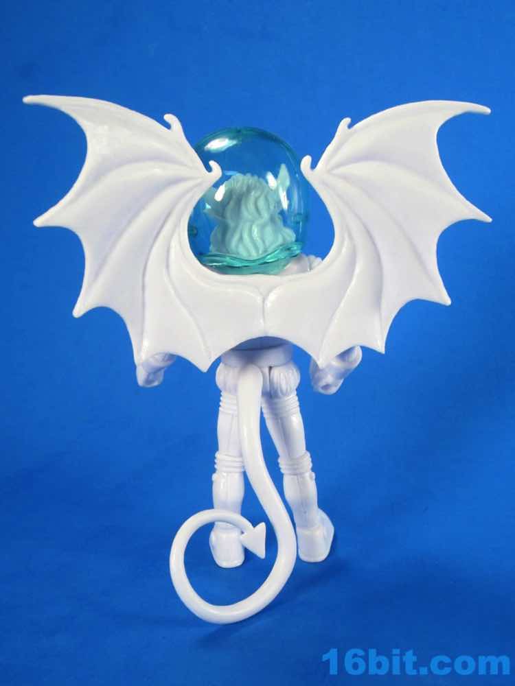 In white, the figure takes on a slightly different aura. It's less "evil demon" and more "Classic statue." Seriously, in white this could be some sort of Roman marble statue figure. The beard looks more ancient, the scowl more patronly. And yeah, he's still got the horns. The blue eyes aren't exactly scary, but there's a blue handheld gargoyle gun for that. The arms are swappable as always, the tail and wings plug in nicely, and he's got the same fancy pants you know and love. It's a nice little thing, and if it had some sort of marble or textured finish I bet it'd look even more amazing. He's also got big feet, which, I guess, should make him popular. Or a clown.