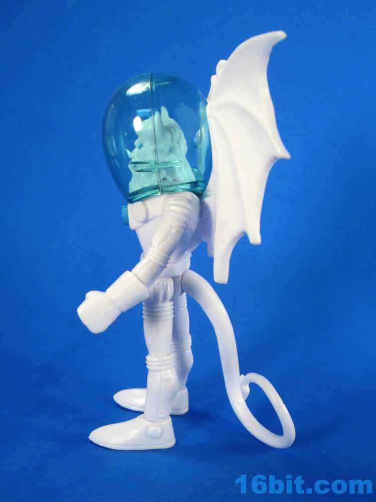 As with the others, the accessories all just work. Glyos parts tend to fit perfectly, so those wings and tail can pop out and pop in with no real problems. The form fit of the 2-piece helmet is perfect, and the hands can hold the weapons. It's tight - very tight - but it works. That's the one nice thing you can say about any figure out of the Glyos program - functionally, it won't suck. The people behind them won't allow it. Sculpted details by The Four Horsemen look as good as always, with lots of little things in the head and gun, while the rest of the figure looks like a descendant of the 1960s. It works.