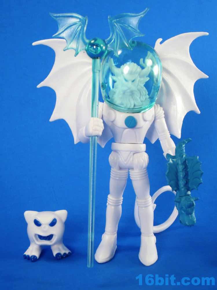 Item No.: n/a Manufacturer:Four Horsemen Includes:Alternate arms, ray gun gargoyle, bat staff, 2-piece helmet, wings, 7 more figures Action Feature:Rotate knob to change to one of three different faces Retail:$115.00 (sold as a set with Astro-Nautilus, Inferno, Xodiac, Alpha 7, Electron+, Commander Comet, and Metamorpho) Availability: July 2013 Other: The Sparsely Decorated White Plastic One