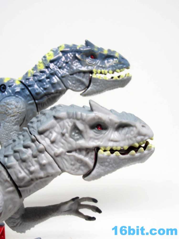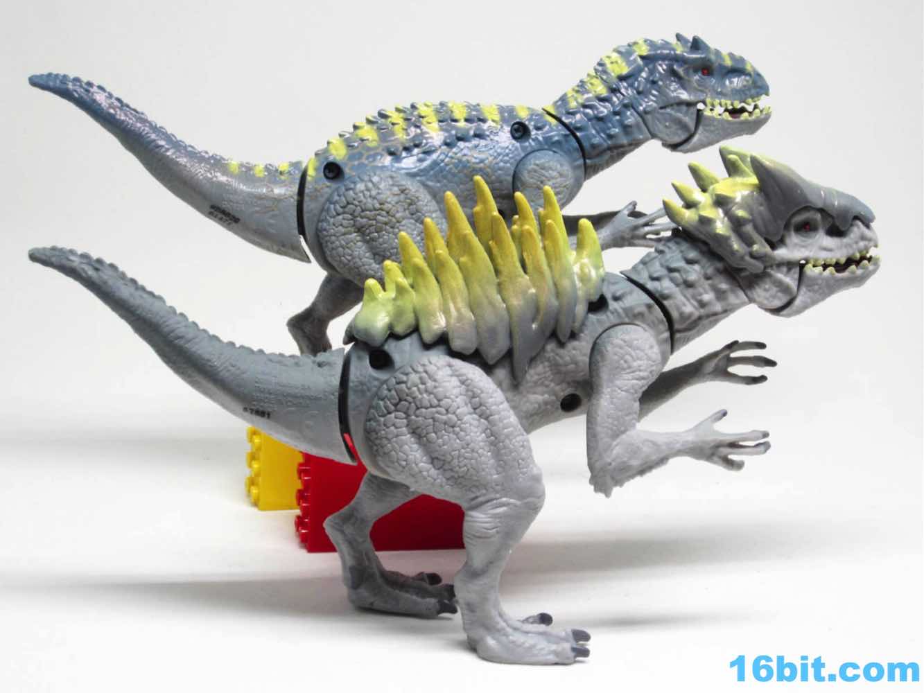 When I saw the Hybrid Dino line, including the new Hybrid Armor Indominus Rex at Toy Fair, my reaction was basically waving my arm around, pointing, and saying "I'll take all of this." (And given how none of the toy press bothered to shoot it except me, it seems I'm alone.) I was smitten - the movie's line was good, conservative yet entertaining. This is, I assume, the result of a tragic accident involving the designer, numerous cans of Monster Kolor paint, and a stack of Melt Banana CDs. Oh, and a freak budget accident, because the paint jobs are way too good when compared to their movie-year kin.