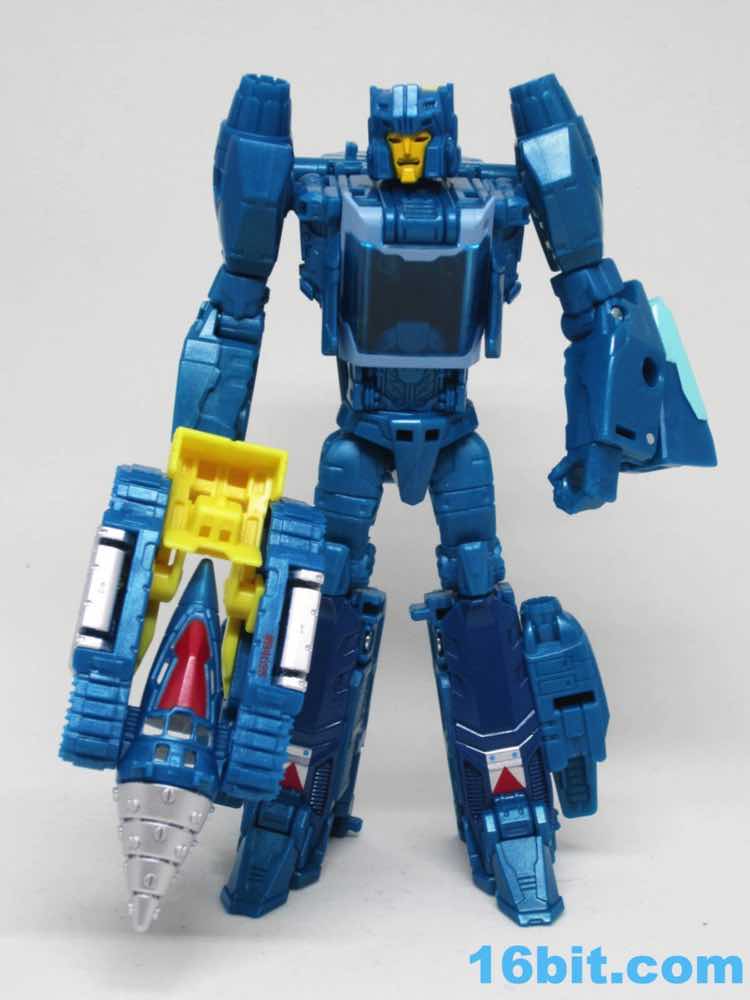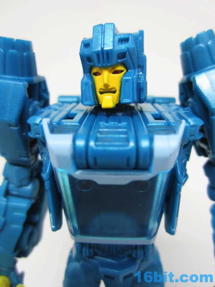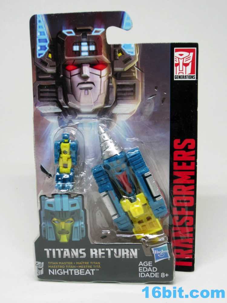 The Nightbeat head mode does have a distinctive feature - it does not look like, nor is it colored like, Nightbeat's original toy. The Titans Return Nightbeat has an open mouth, small red eyes, and a yellow face. The original Nightbeat toy has a closed mouth, blue eyes, an orange face, and a blue helmet with yellow lining. In the comics - which is how most people know the toy - he wears a visor, and is commonly blue with yellow and/or orange. Considering the unique eyes and open mouth with visible teeth, this is certainly a unique departure from the original head - he doesn't even have the "pistol ears" - and is in no way a more authentic recreation of any existing Nightbeat toy. It's a new take, it's a new thing, and you will not be left wanting for a "Titan Master Socket" upgrade replacement piece to put on your Thrilling 30 Nightbeat so that you may use this head. Rather, this figure makes an excellent pilot for a Titans Return vehicle or a figure to populate one of the four known bases coming for this line. The head is in no way bad - it's neat, actually, and has a lot of personality - it's just that if they called it "Bill" or "Fartsmeller" you'd probably be more accepting of it as a new toy of a new character.