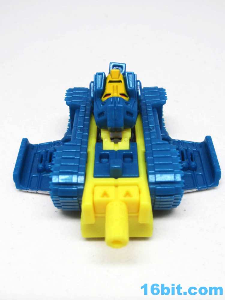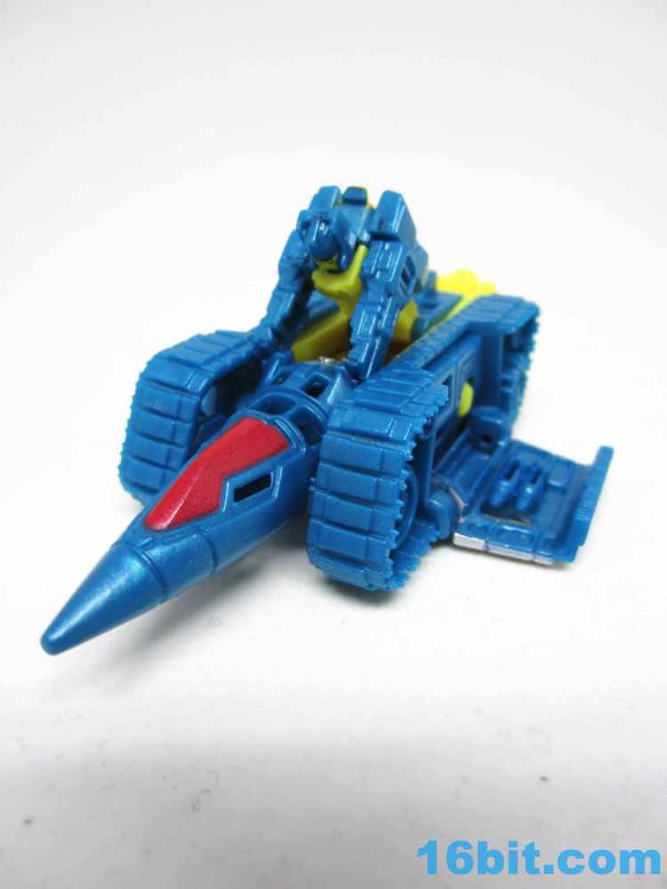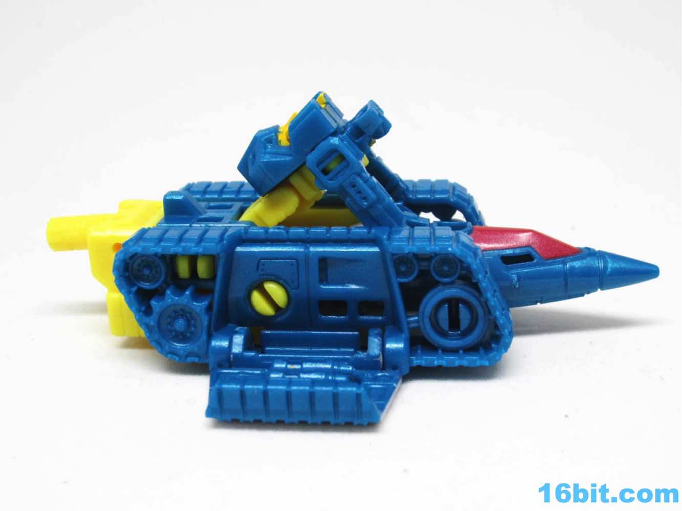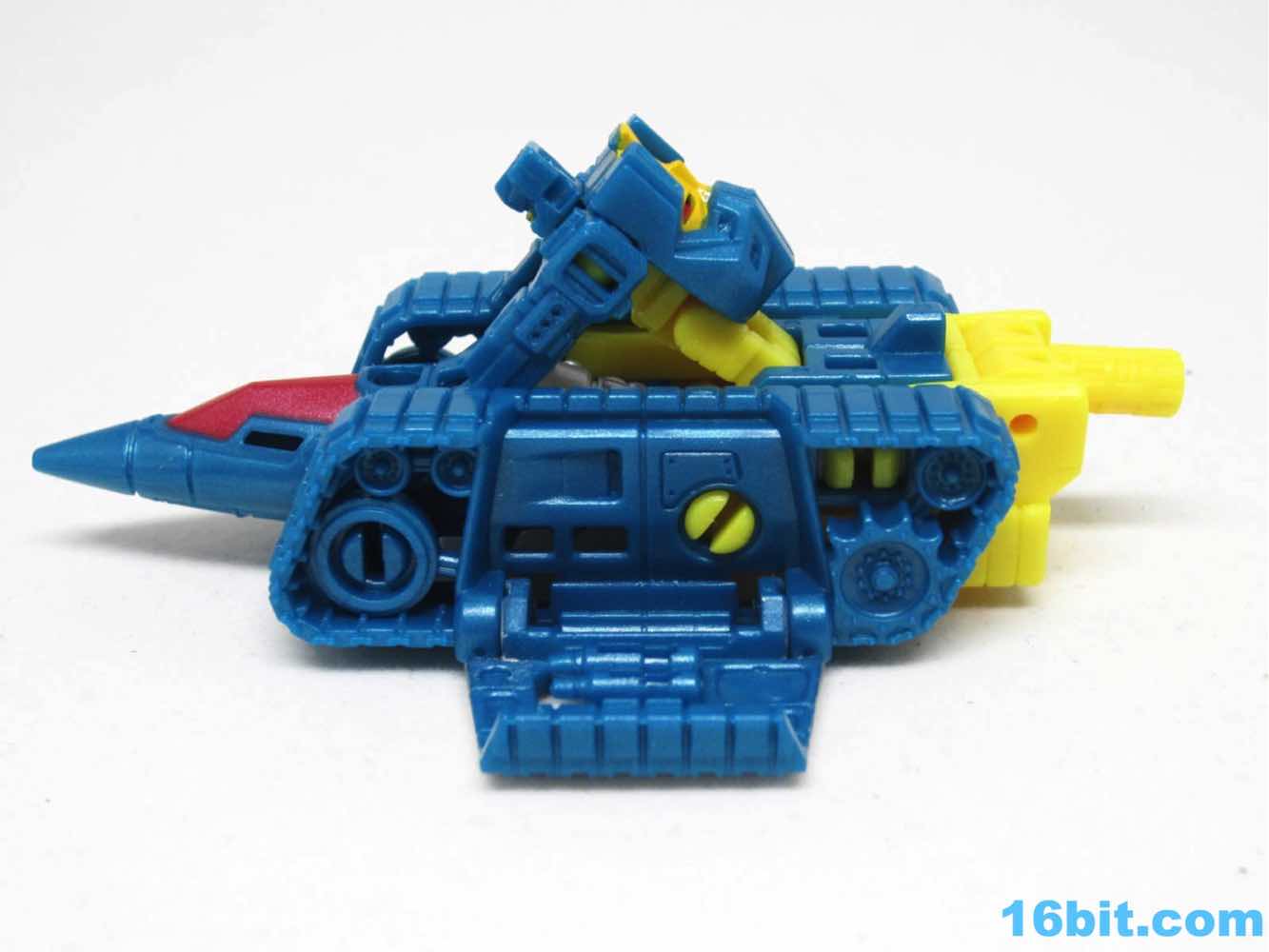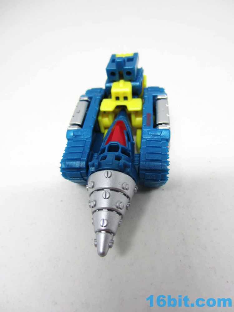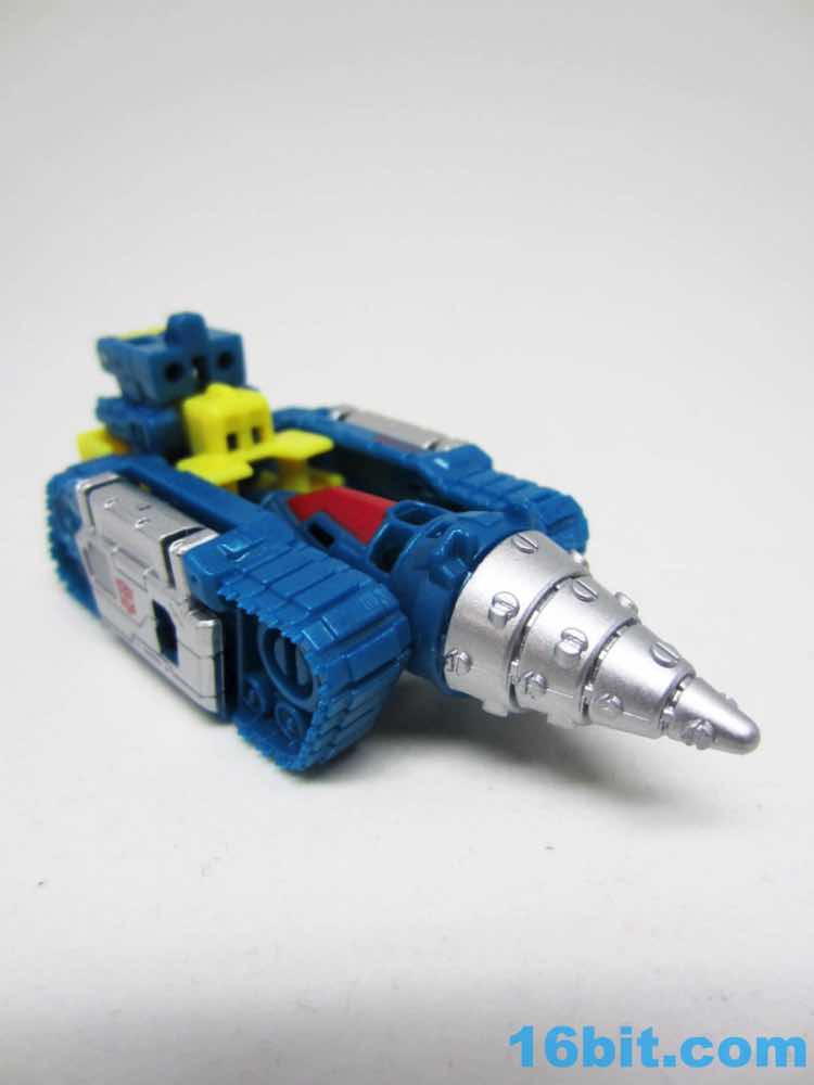 Transformation to drill tank (and weapon mode) is easy - fold up the wings. Flip the nosecone to a drill. Flip up the plug to attach the figure - and you're mostly done. This is where the figure starts to become a nightmare. To complete the drill tank mode, you have to plug in the head to a small socket and there's really not enough clearance to get it in there without using a lot of force. It's not smooth, it does not plug in well. Kids will not enjoy this, and collectors may accidentally decapitate Nightbeat in the process. This where the figure goes from "maybe not your cup of tea, but basically good" to "low-level design disaster." You are best served by leaving the head component off. You will be happier.