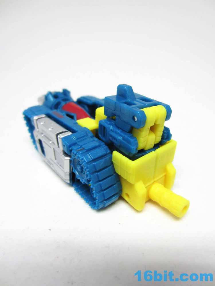 The tank - which becomes a handheld drill if you flip down a 5mm peg on the back - is really pretty. The silver drill doesn't spin, but it is sculpted nicely and painted well. The treads have silver bits on the sides with sleek lines and equally slick silver decoration making them pop nicely - one side has an Autobot symbol. It's a cool little vehicle, but has no wheels and, again, the figure's ability to plug in may well be the worst in the entire line. I hope there's a retool variant.