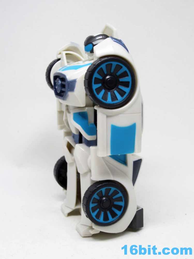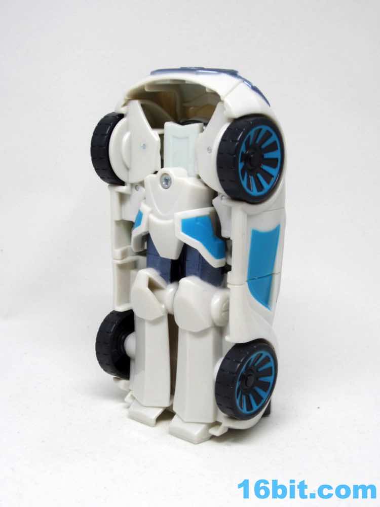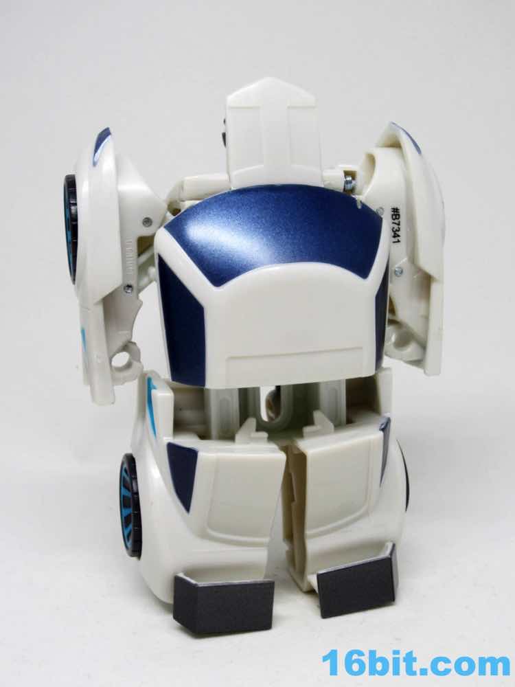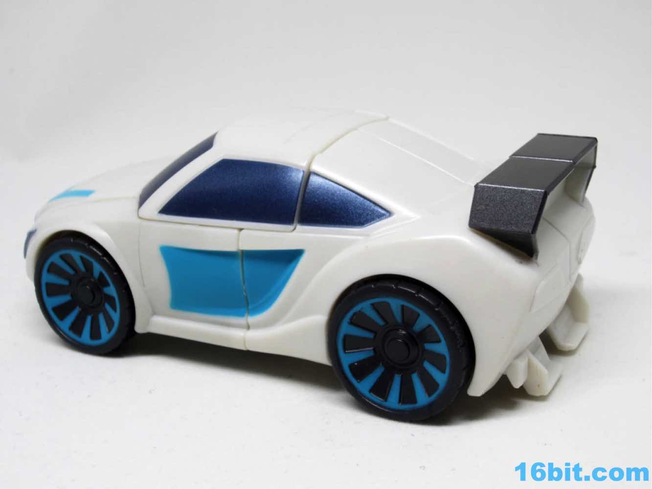 The car is a car - it's white, it has some blue on it, and they painted most of the windows. I'm surprised only the rear window was left undecorated - but not as surprised as I was by the spiffy painted grille, the blue on the doors, the painted spoiler, and of course the aforementioned blue on the wheels. The car mode is very nice, and the wheels roll freely. I realize this is coming off as a book report, but it's always kind of stunning when the toy meant for toddlers turns out above and beyond your expectations. She's neat!