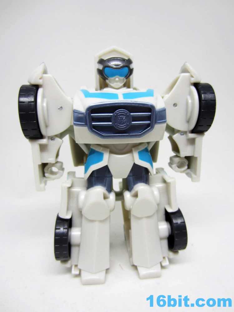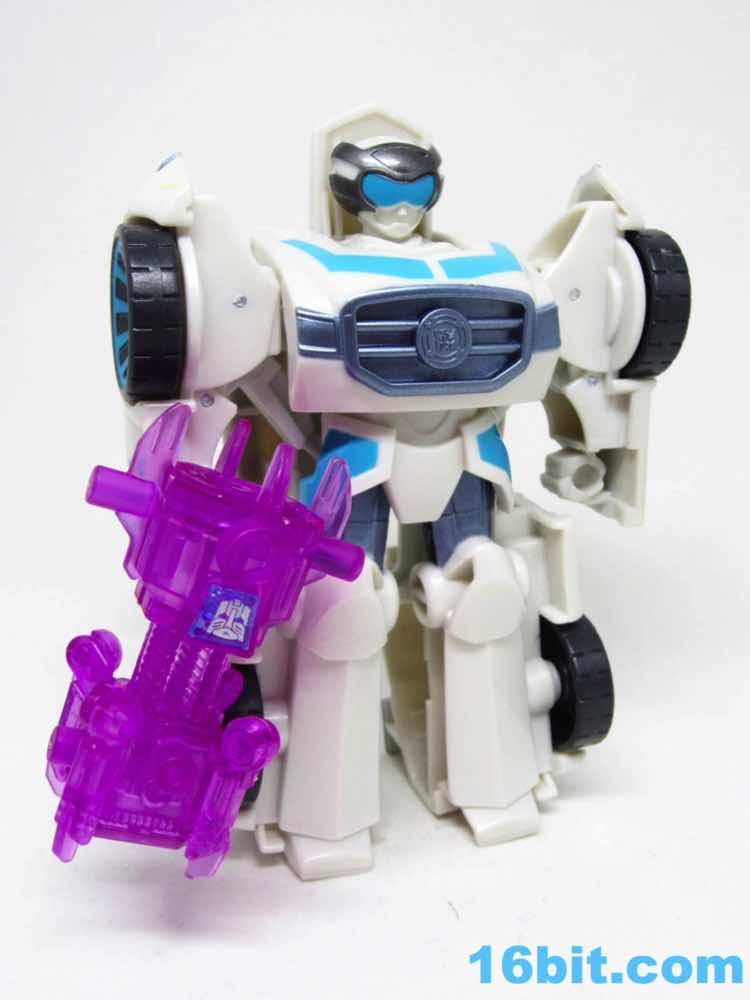 As there are precious few white 'bots in this line, it should be easy for kids to ask for her by color if not by name. I'm surprised to see her bow at two per carton, but the good news is you should be able to find one in stores soon if you haven't already. Because I don't have any other toys quite like her, I'm thrilled to add her to the toy shelves - but if you want something that's fun to play with, this ain't it. She looks cool, the transformation is quick and fun, but there's not a lot of action here. Having said that, buy her before Titans Return Stripes. I like this mold, and were it not for Bumblebee I'd probably be clamoring for a redeco of her as a similarly helmeted and proportioned character like Hot Shot from Transformers Armada.