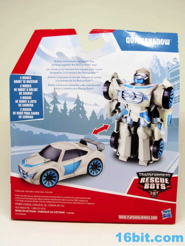 I scored (an early?) Rescue BotsQuickshadow out of a goodie bag at a press event, and she's pretty nifty. The box art shows a grey car and the bio completely downplays any indication that this is the girl - the form isn't overtly feminine, there's no pink, and were it not for the thin waist and skinny build on the artwork you'd probably never even guess that this is a she. It's probably a smart move, as common wisdom is/was little boys don't want to play with little girls. I know it was often a challenge to find the girl figures when I was a kid - Leias weren't common in the 1980s - but I'm one of those people that never grew out of toys, so I'm not a good benchmark. This one is debuting at 2 per case, so clearly someone at Hasbro expects her to be popular.