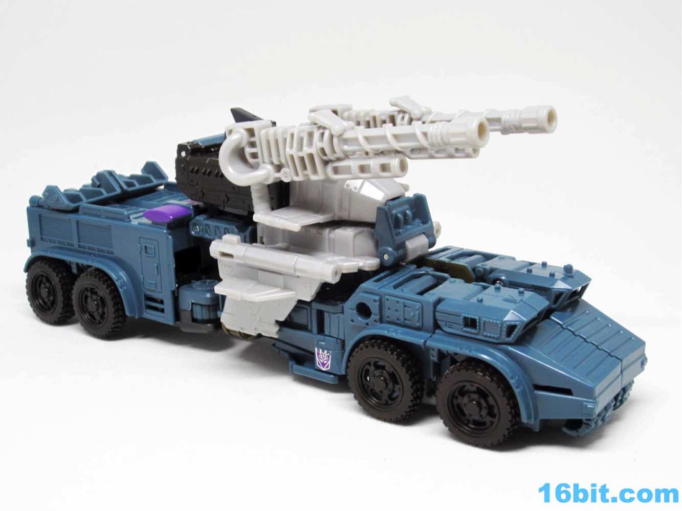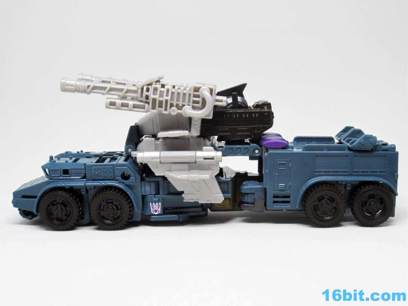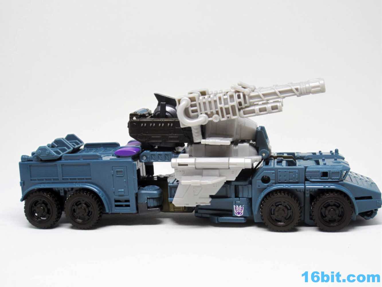 As with the other torsos, Onslaught is a 7-inch tall robot mode with decent articulation if you get the knees formed correctly. Double-jointed elbows are scarce, but are necessary for the figure to really do what it needs to do. The deco is a pretty impressive piece of work, replicating labels from the original toy while also downplaying the fact that just a few months ago we all bought this as a blue fire engine. The robot has new shoulders, a new head, and a new chest which do a bang-up job making you forget his original identity. Granted, the knees with the purple emergency lights are something of a dead giveaway. Of all the modes, this one works out to be the best - everything fits, including the two cannons as the classic over-the-shoulder weapons.