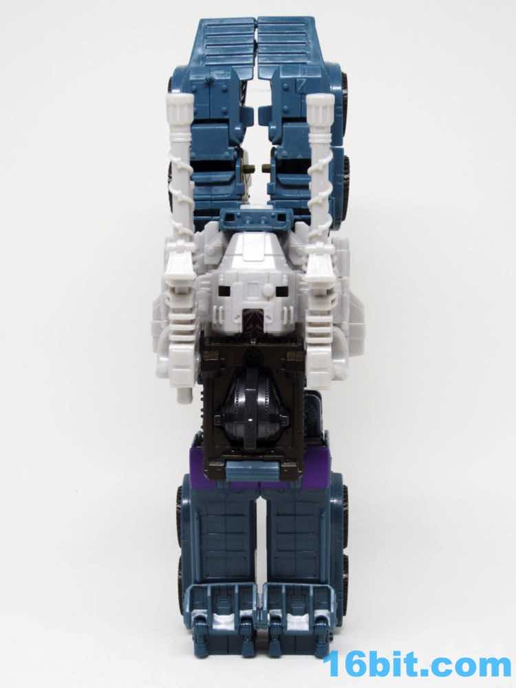It redeems itself nicely as Bruticus - minus one little detail. The combined head is glorious. The chest plate is silver, and while Hasbro says a variant is coming it is important to remember we don't know how, where, or when. (And the promised 2008 Universe Ironhide face variant never materialized.) It looks good - as a combined robot made mostly of repurposed tooling, the complete Bruticus is a great example of how Hasbro can pull a little extra oomph from its investments. They don't always work, but here they work well. My big problem is the robot mode arms sort of hover/dangle, not quite fitting with the pegs and slots in a pleasing way. The same thing happened with my Pyra Manga. It's annoying.