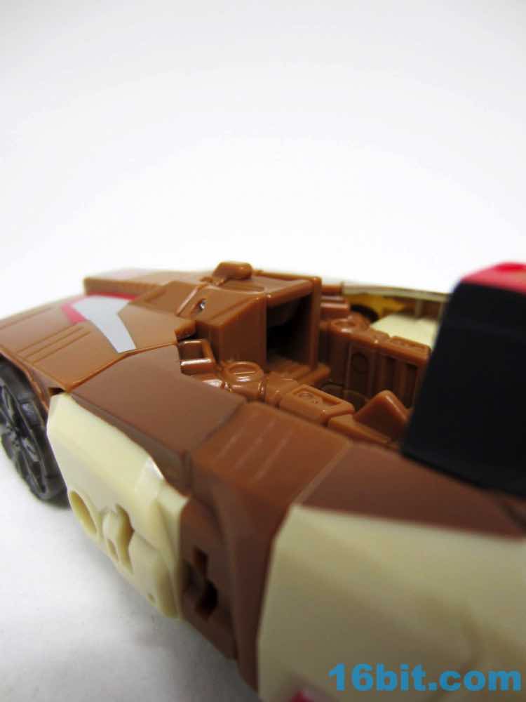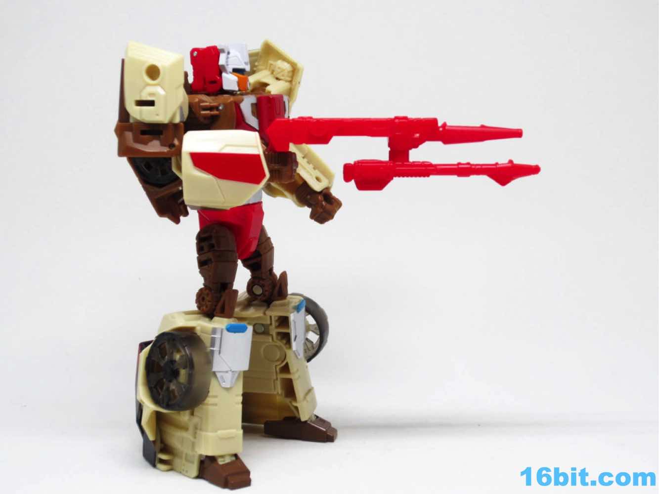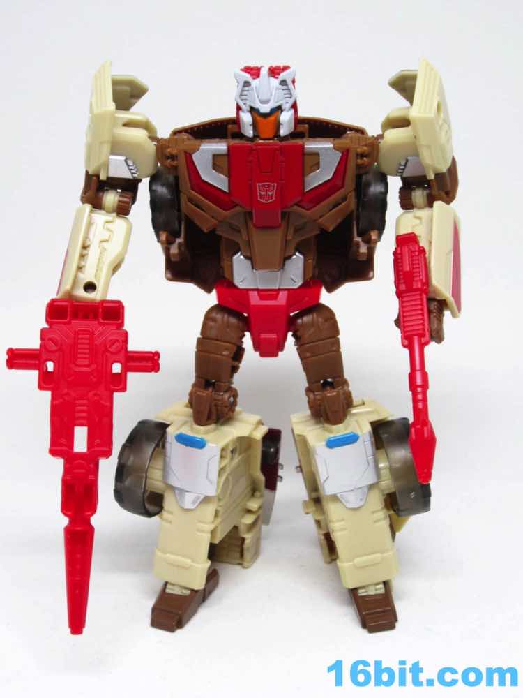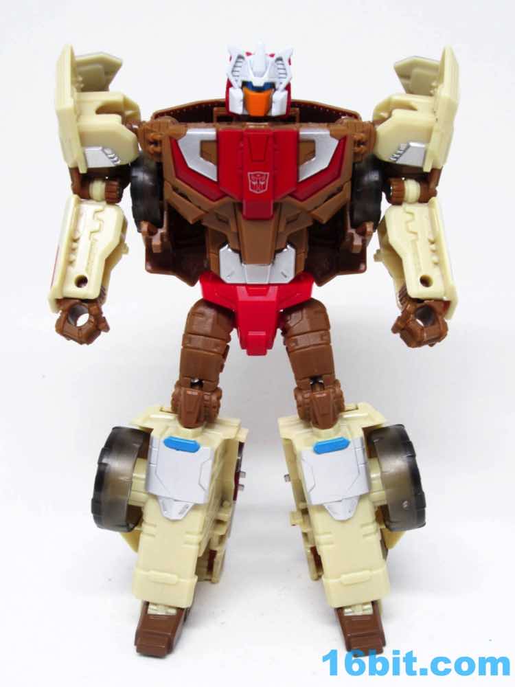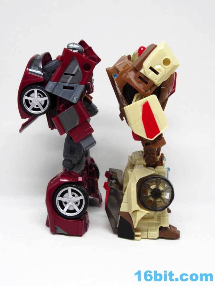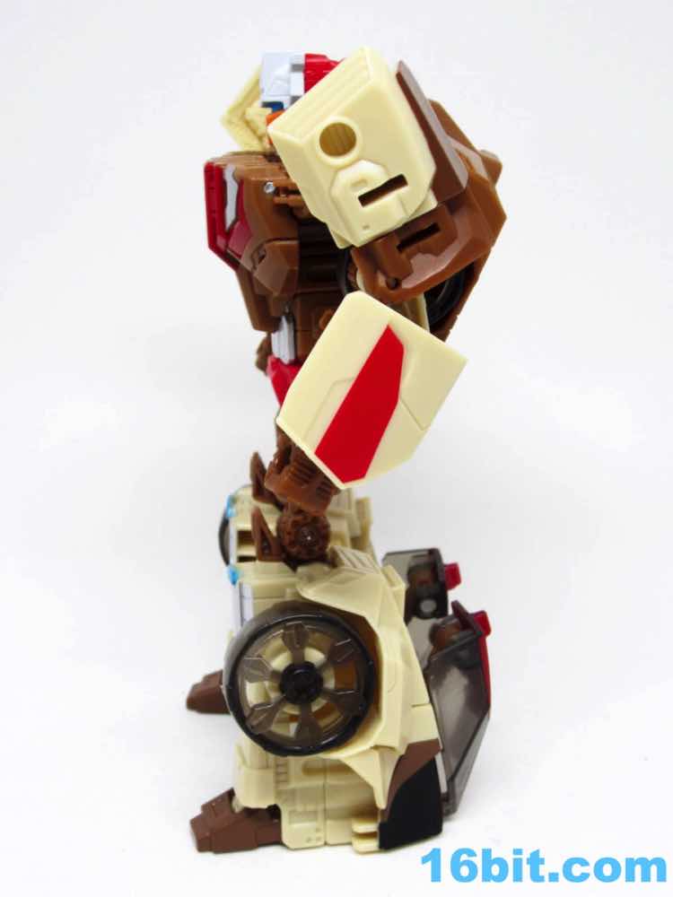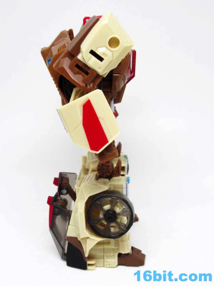 Changing this car into a robot is pretty easy. Did you buy Dead End/Prowl/Lightsteed/Break-Neck/Streetwise/etc.? Then you know what to do here. Everything fits together quite nicely and it's easy to do - you won't jam your fingers or pop off parts. Unlike Blurr, the parts store on the vehicle, and not in it. It's a pleasure to convert and futz with, much in the ways Highbrow isn't.