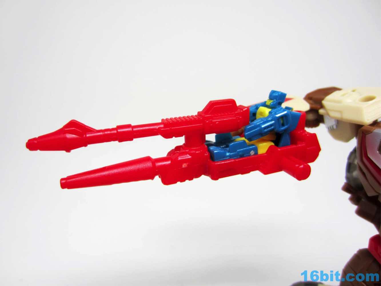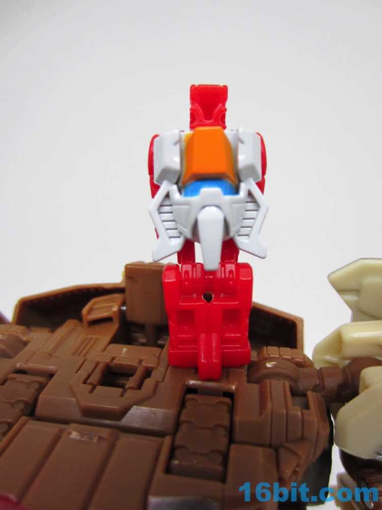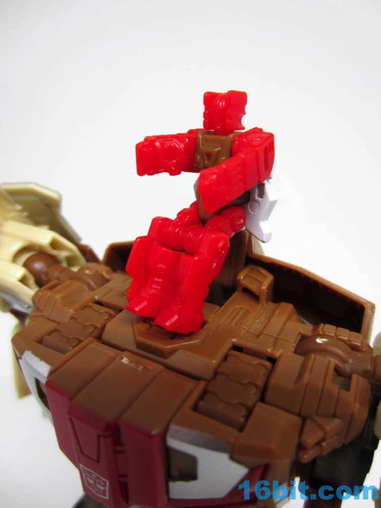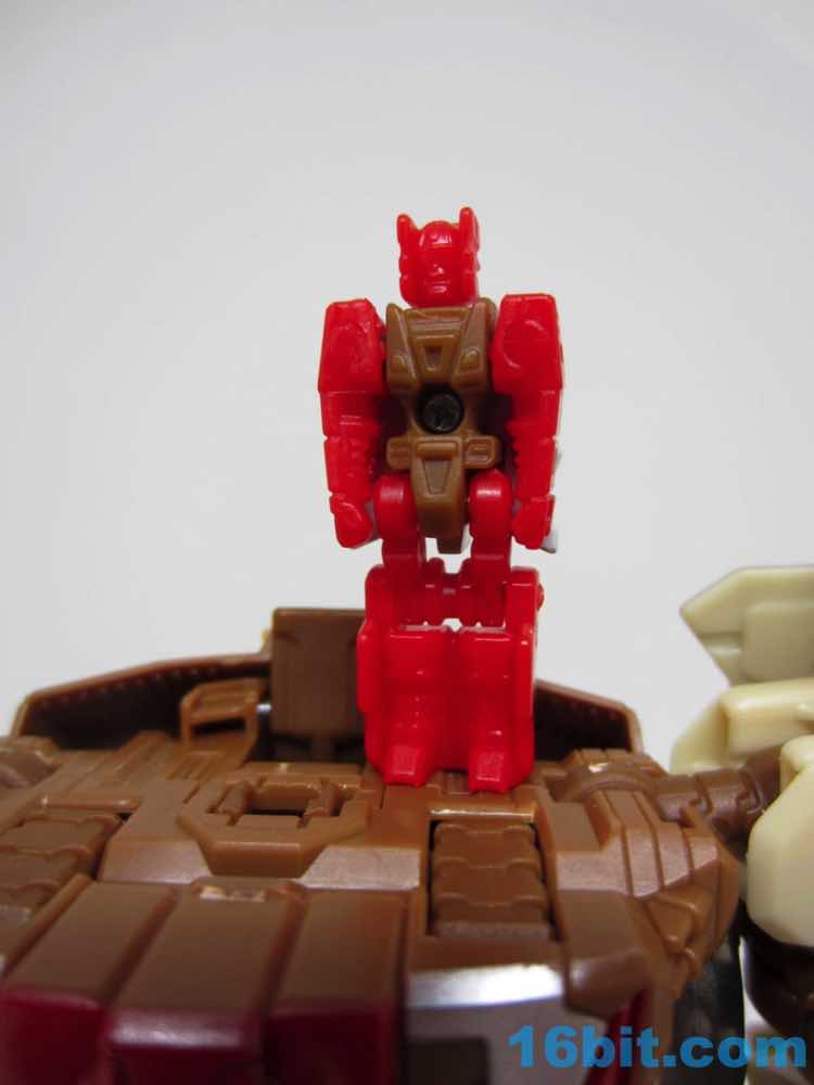 This 1.5-inch head robot is Autobot Stylor, and his colors changed a tiny bit from the early renderings - the head is now red, and there is no paint to be seen here. All of these guys are largely cut from the same cloth - articulated neck, knees, arms, hips - and he functions well. As a robot, he can sit in Chromedome's driver seat or the big gun. As a head, he fits in the neck socket perfectly without bobbling and wobbling - which seems to be pretty hit and miss across the line so far.