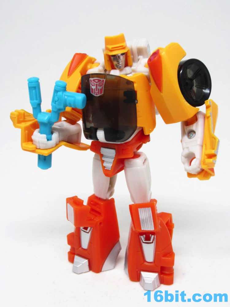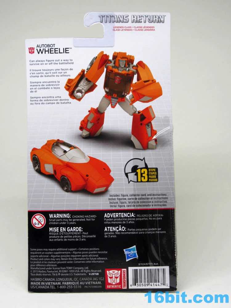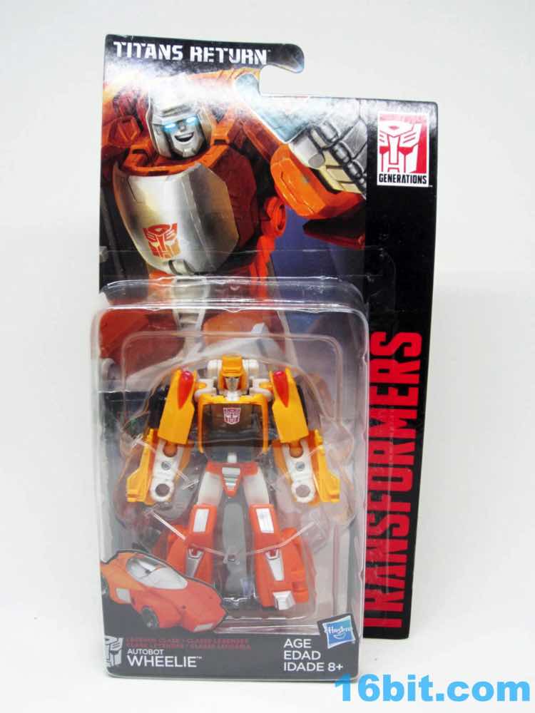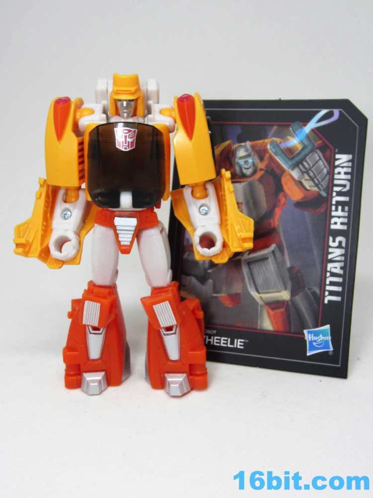 Time can really change an opinion of a character. It seems like in the 1990s opinions weren't high on this character, but we've had three new takes of this character since 2009. The latest is Titans ReturnAutobot Wheelie, which may be the best or second-best depending on your needs. It seems Hasbro has decided to make the Legends-class (4-inch robots) the new standard for the classic Minibots updates, so the orange toddler is now in scale with your updated Bumblebee, Warpath, Cliffjumper, Gears, Swerve, Windcharger Powerglide, Cosmos, Tailgate, and whoever I am forgetting. He's decent in both modes, looks good, and has everything you could want - save for a slingshot. You'll have to buy the Generations/GDO Wheelie [FOTD #590] for that.