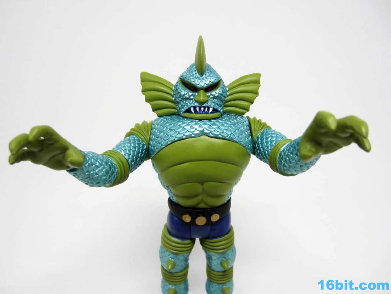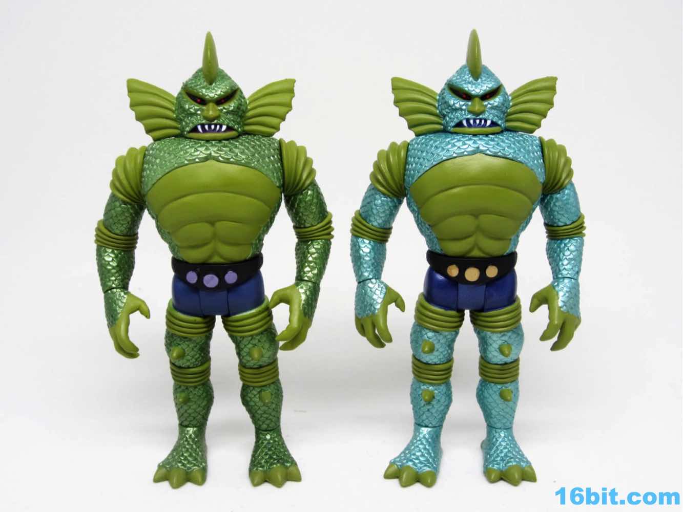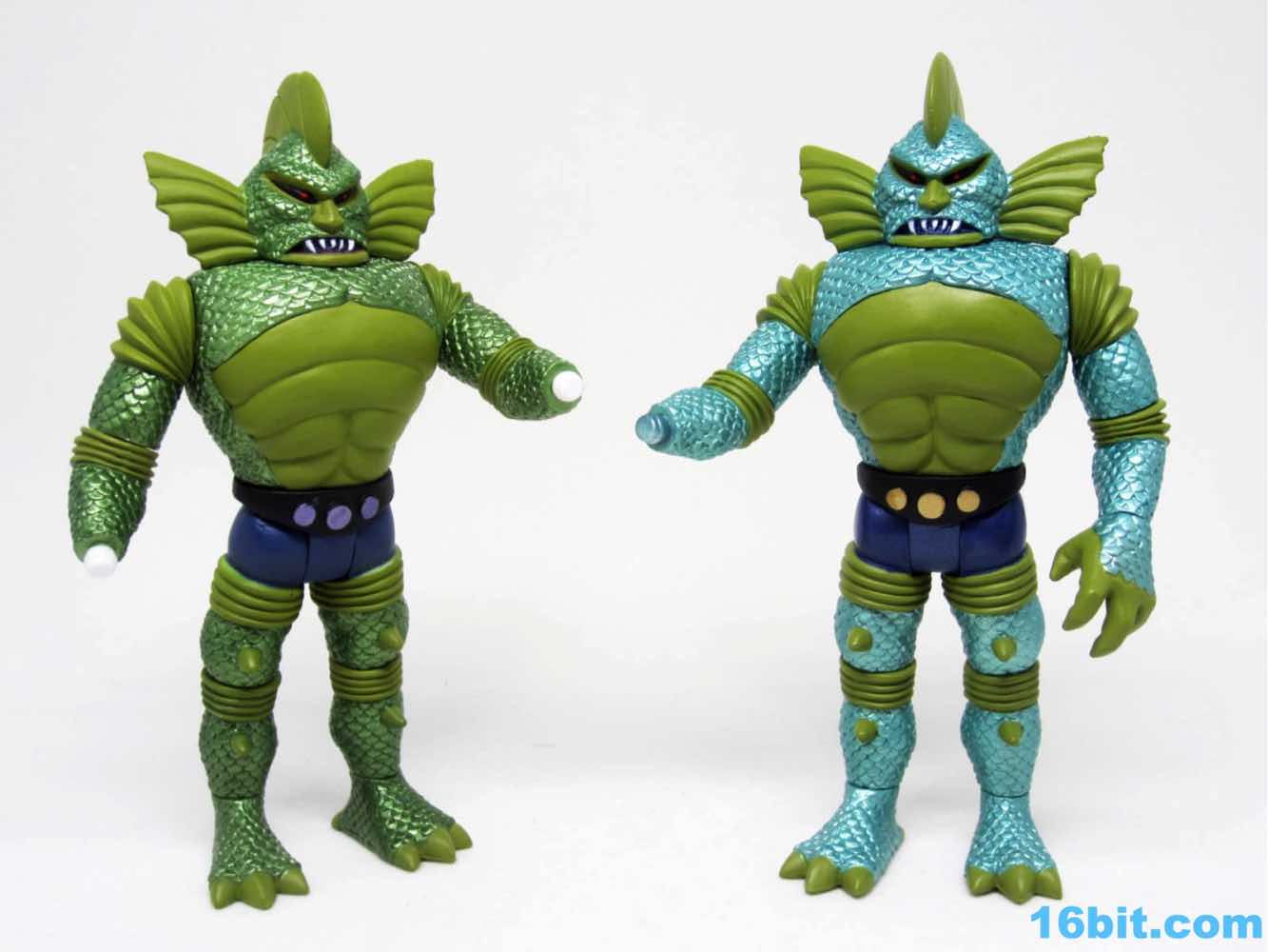 What you may not know is that the original bendable figure from the 1960s has a deco variant. I don't mean like a Bullmark copy or one of the many knock-offs, but there's a bluer version with green eyes as opposed to a greener version with red eyes. The 2016 figure mimics much of that variant - the scales on his skin are a very bright and light blue green, which seems lighter than the original figure. The new figure's eyes are still red, but the belt has changed - the three dots on the buckles are gold, rather than purple. This sets it apart nicely.