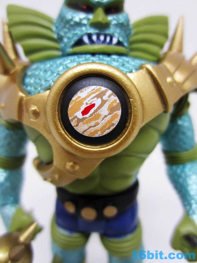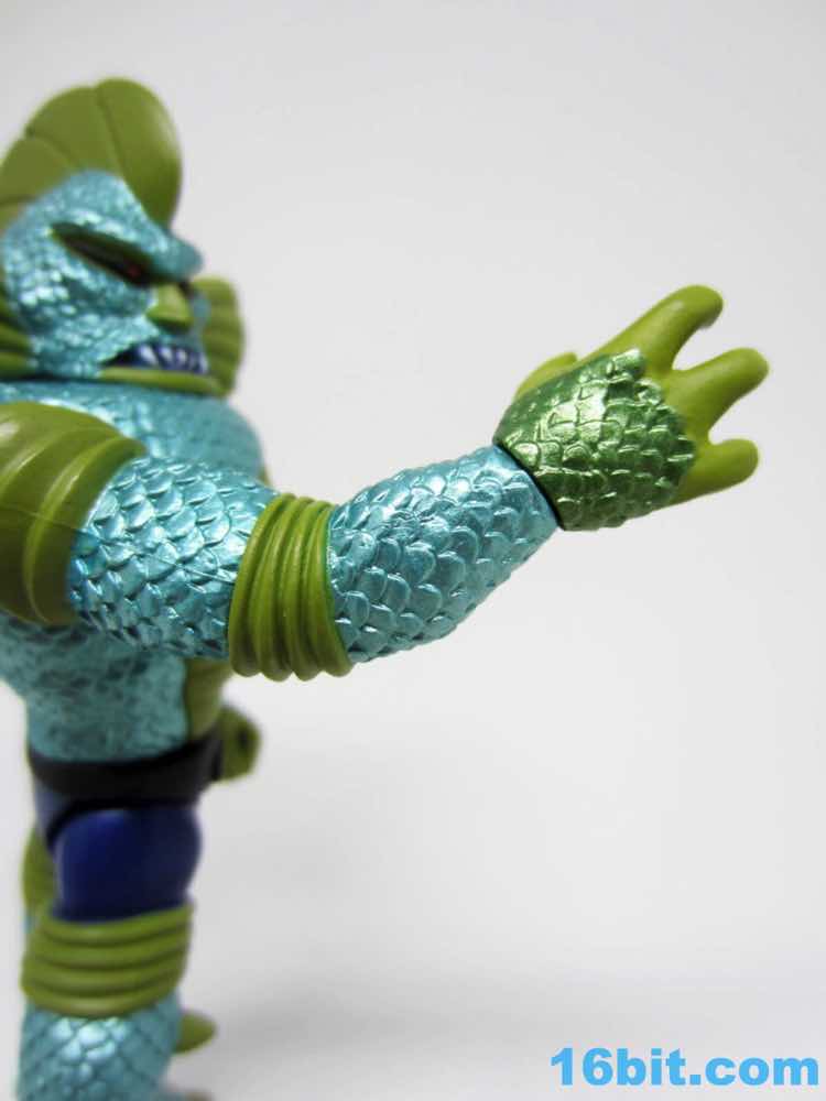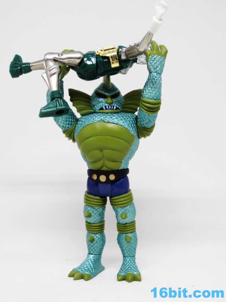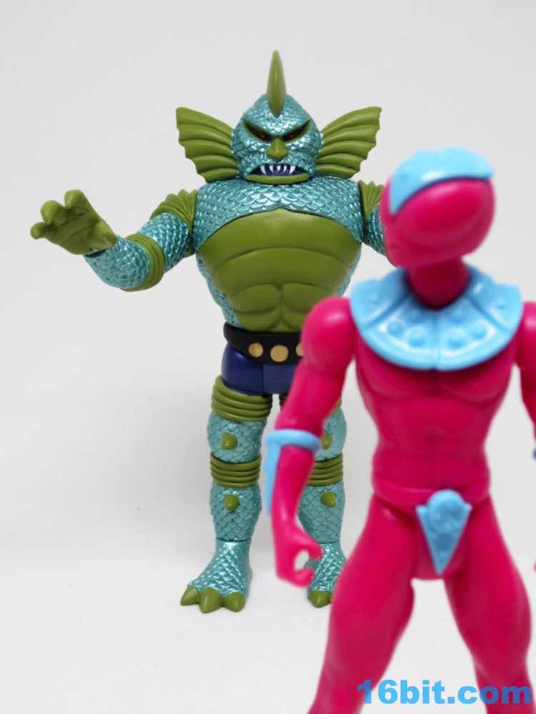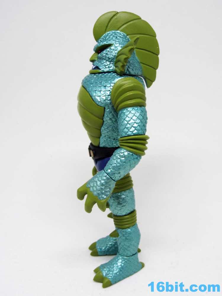 What you may not know is that the original bendable figure from the 1960s has a deco variant. I don't mean like a Bullmark copy or one of the many knock-offs, but there's a bluer version with green eyes as opposed to a greener version with red eyes. The 2016 figure mimics much of that variant - the scales on his skin are a very bright and light blue green, which seems lighter than the original figure. The new figure's eyes are still red, but the belt has changed - the three dots on the buckles are gold, rather than purple. This sets it apart nicely.
