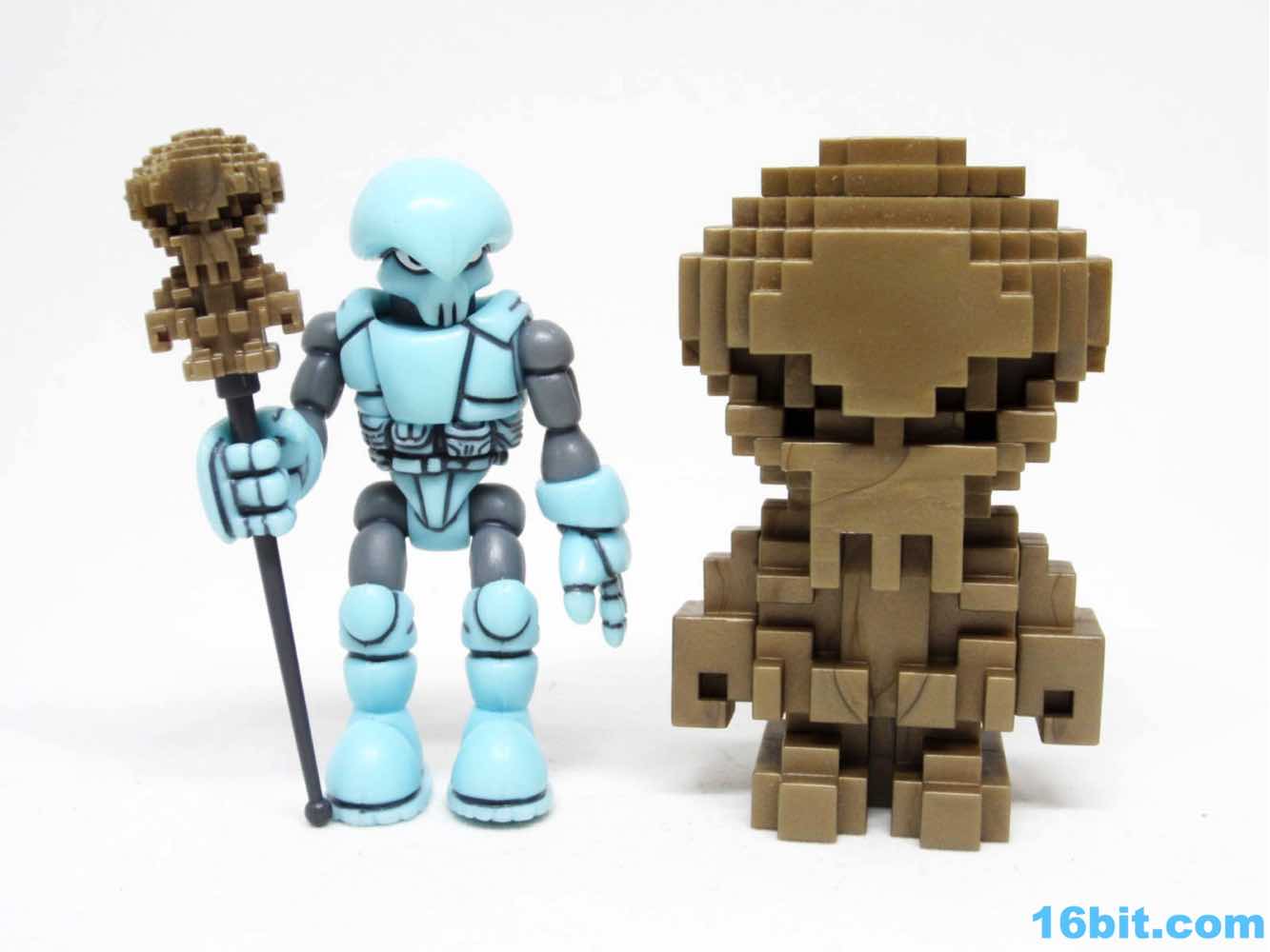 When I saw the first Bit Figs showing up on social media, I thought "Those are neat, but I'm sticking to this whole 'don't buy made-on-demand' kick." I already live in sort of a black hole of toy purchases. When I saw a plastic made-in-a-factory Mega Bit Pheyden Trophy Set was on sale - $10 for 2 figures, no less - I pounced. I love weird pixel things, and I love Glyos, so it's a good mix. (So far I've skipped Minecraft because boy howdy those things are pricey.) With a 2 3/4-inch and a 1-inch figure, made of 4 total chunks of plastic, I figured I should give these a whirl.