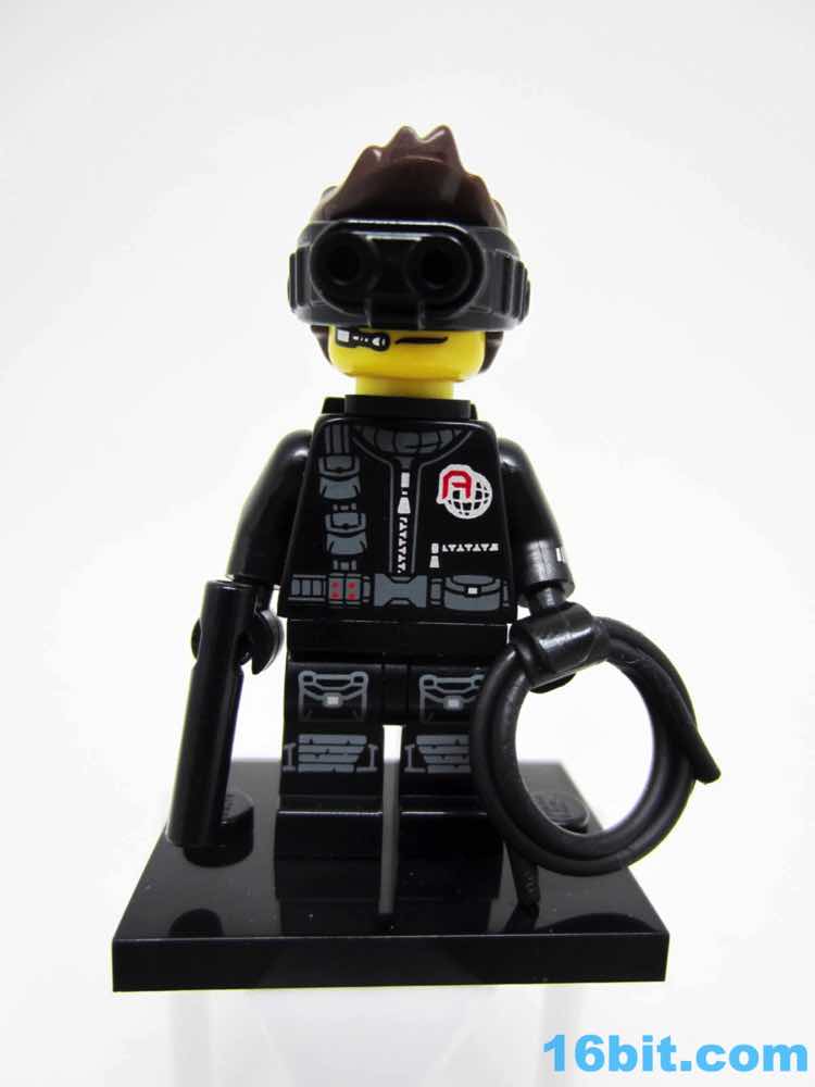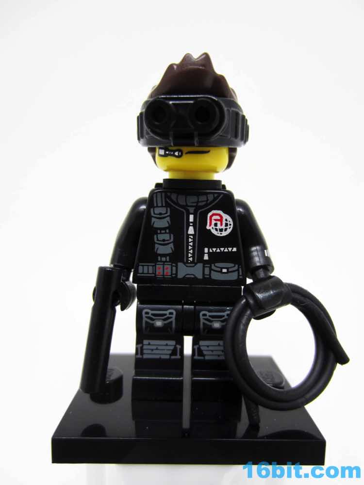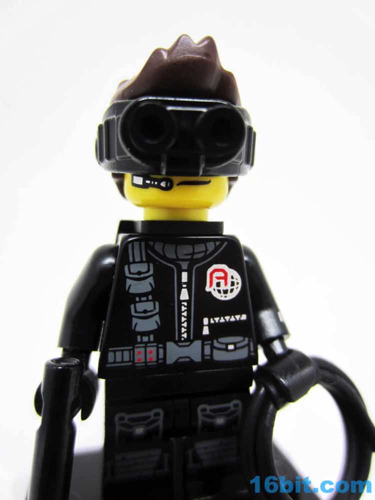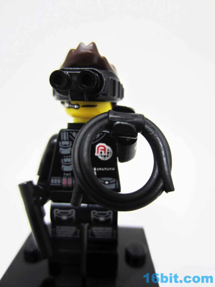 The gun and ropes fit in his hands perfectly because LEGO can't do anything less than near-perfection, and all parts fit together swimmingly. The goggles clamp on to the hair piece, mostly covering up the TED Talks mic on his face. You can't see it, but he wears a stern expression under the eyewear.
