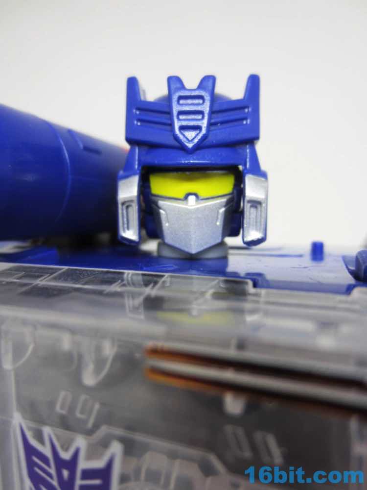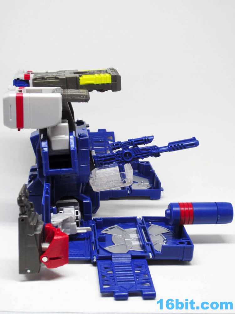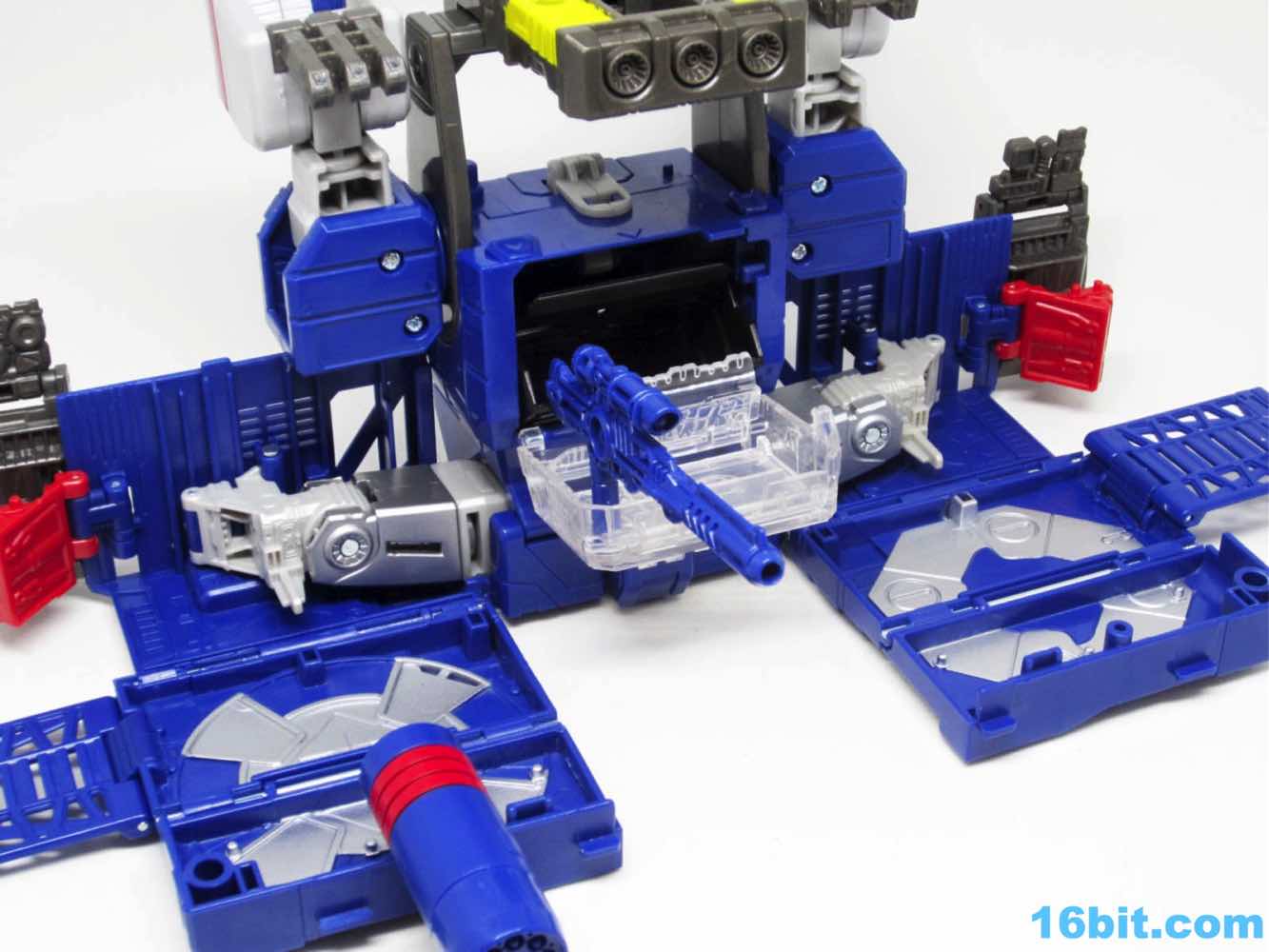 The robot mode is unquestionably Soundwave, thanks in part to the shared pieces. The arms are the same on both - it's just how you paint them. Soundwave sports new legs, a new torso, new crotch flaps, and a new helmet - but most of the other inner workings are all the same. The new deck door drives the point home quite nicely, but when you get right down to it the functionality is identical. If you can transform one, you can transform the other.