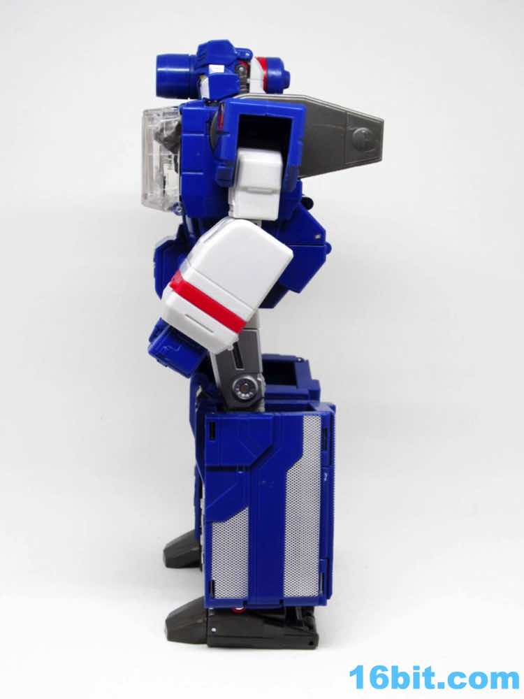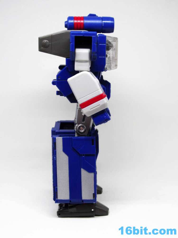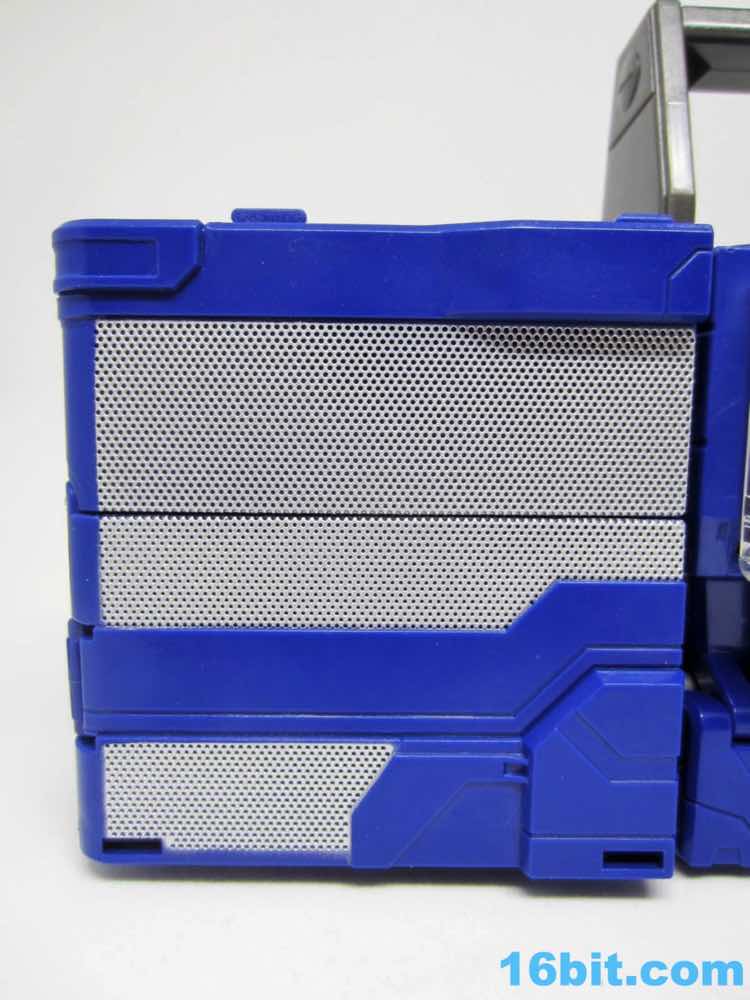 This figure measures roughly 9-inches tall in robot mode including the head. He shares Blaster's gun, rather than the original, classic "battery gun" with the silver chrome rockets. I'm sort of disappointed about that - I loved the battery gimmicks. Oddly, the shoulder battery has to be plugged on a 5mm peg on his butt when in tape deck mode as there's no way to open it up like the original Soundwave toy. That original one just feels more and more clever.