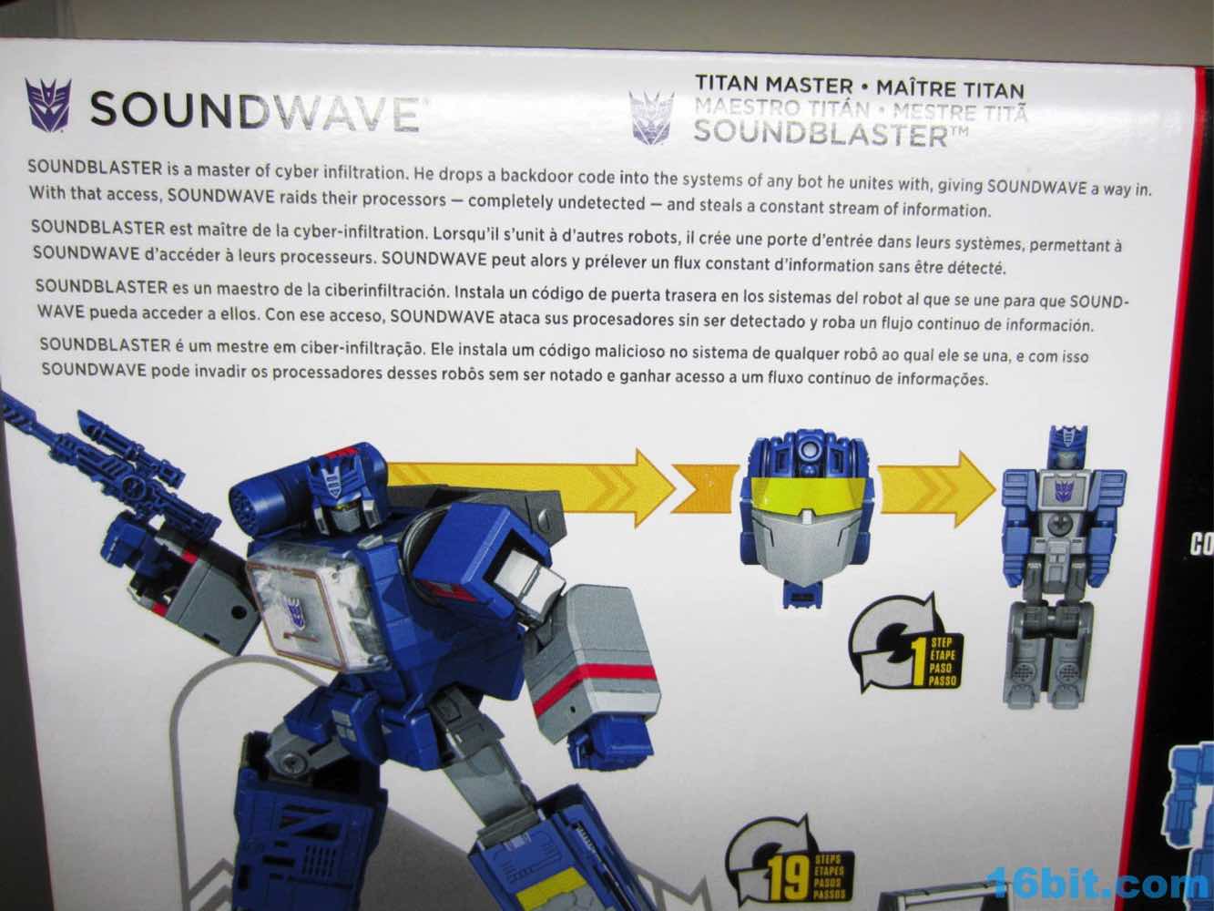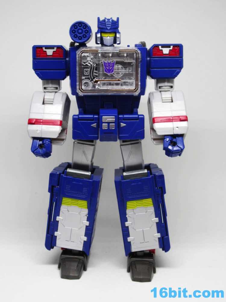 I assume we won't get the black repaint as Soundblaster in the USA, but who knows what Comic-Con could bring next year? Fans have been wanting a mainline "classic" Soundwave for years and this is pretty close - the boombox doesn't look like the original microcassetterecorder, but it's a blue and silver tape deck with fake power and headphone jacks on the back. That has to count for something. I assume anyone buying this will keep it in robot mode, so keep that in mind if you already have the Masterpiece Soundwave(s) - it's more expensive and worth it. This is cheaper and a good substitute, especially because it's fun to swap out the faces. If you want a whole collection of Leader-class Decepticons, you'll want this to go with Megatron and your Seekers from last year. If we get Shockwave, Hasbro will have effectively delivered the most important bad guys from the original show in the biggest size class. It's great that Soundwave can store Buzzsaw/Ravage/Rumble/Laserbeak in his chest, but I doubt fans will rest until they make a new cassette player with new tapes. After all, since 2006 the format has become retro-hip.