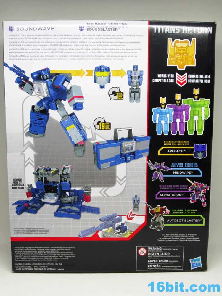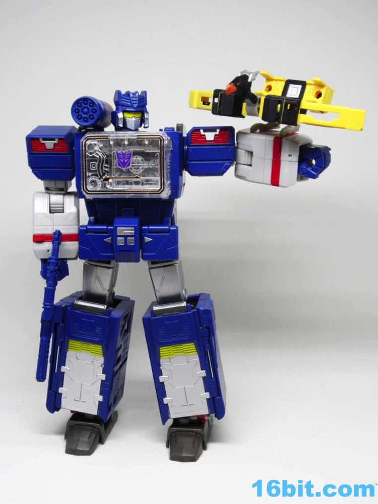 Item No.: Asst. B4697 No. B8358 Manufacturer:Hasbro Includes:Soundblaster, MP3 player slug, battery, Electro-Scrambler Action Feature:Transforms from head to robot, also robot to stereo to playset Retail:$44.99 Availability: September 2016 Other: Retooled from Blaster