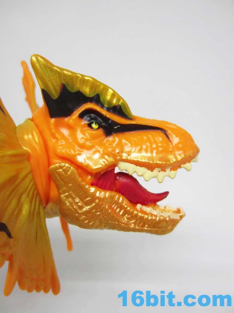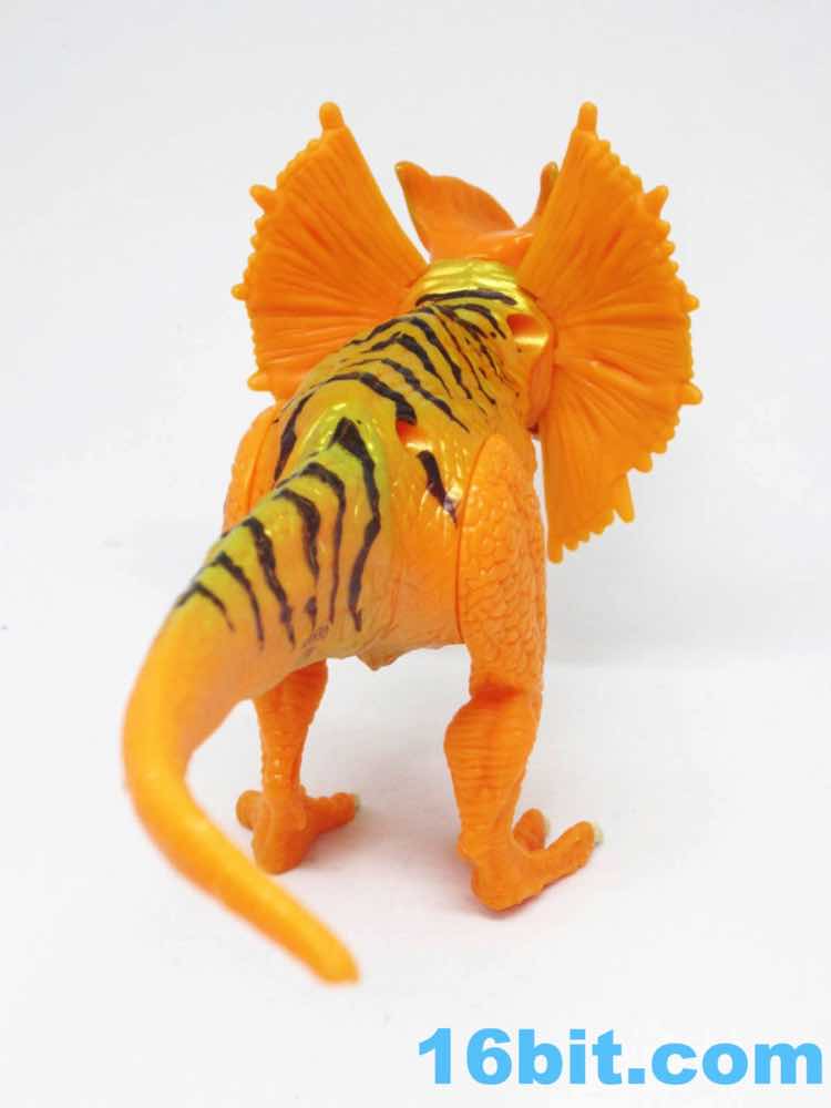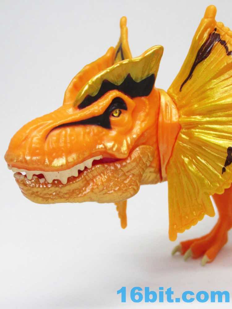 Look, I'm not going to go with a cheap joke here. I don't need to make a crack about how the deco for the Dilophosaurus Rex may have been done by someone who enjoys the recreational sniffing of paint. But I will say if they are, I support this. The original prototype was an orangeish brown, but the final toy in my hands as I write this - next to my hands, I couldn't type - is bright orange. Like, real bright orange. I've got some bright orange toys, this is largely brighter.