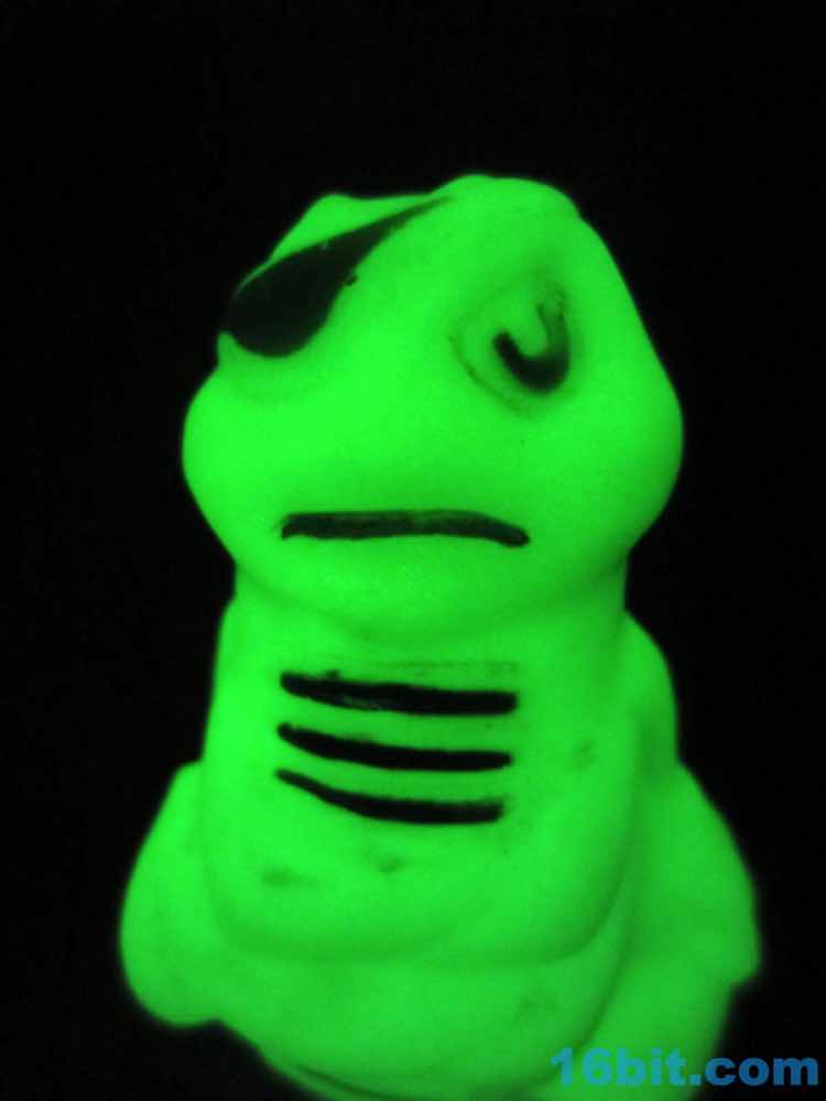 At around 2 1/2-inches tall, this is a glowing bug with sculpted Mickey Mouse gloves on his hands, an eyebatch, and a stern, disapproving pose. What this has to do with menacing the glowing hollow vinyl undead, I do not know, but it has the words "PINEAPPLE IND MADE IN CANADA" on its tail.