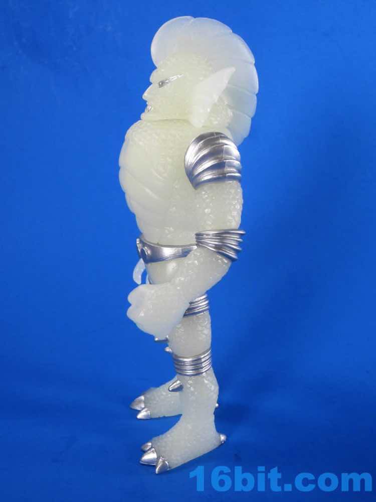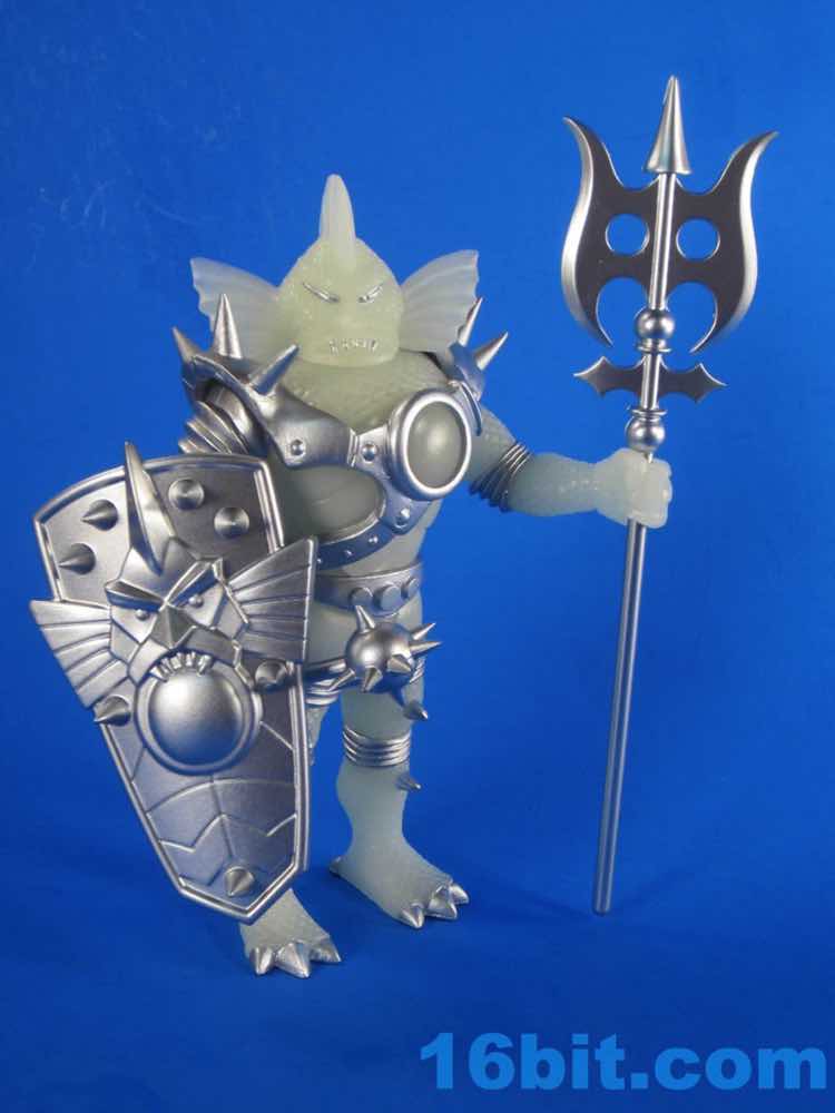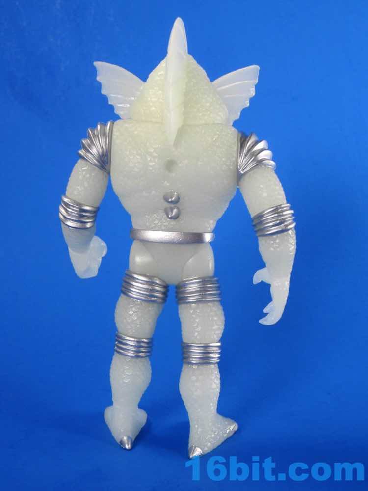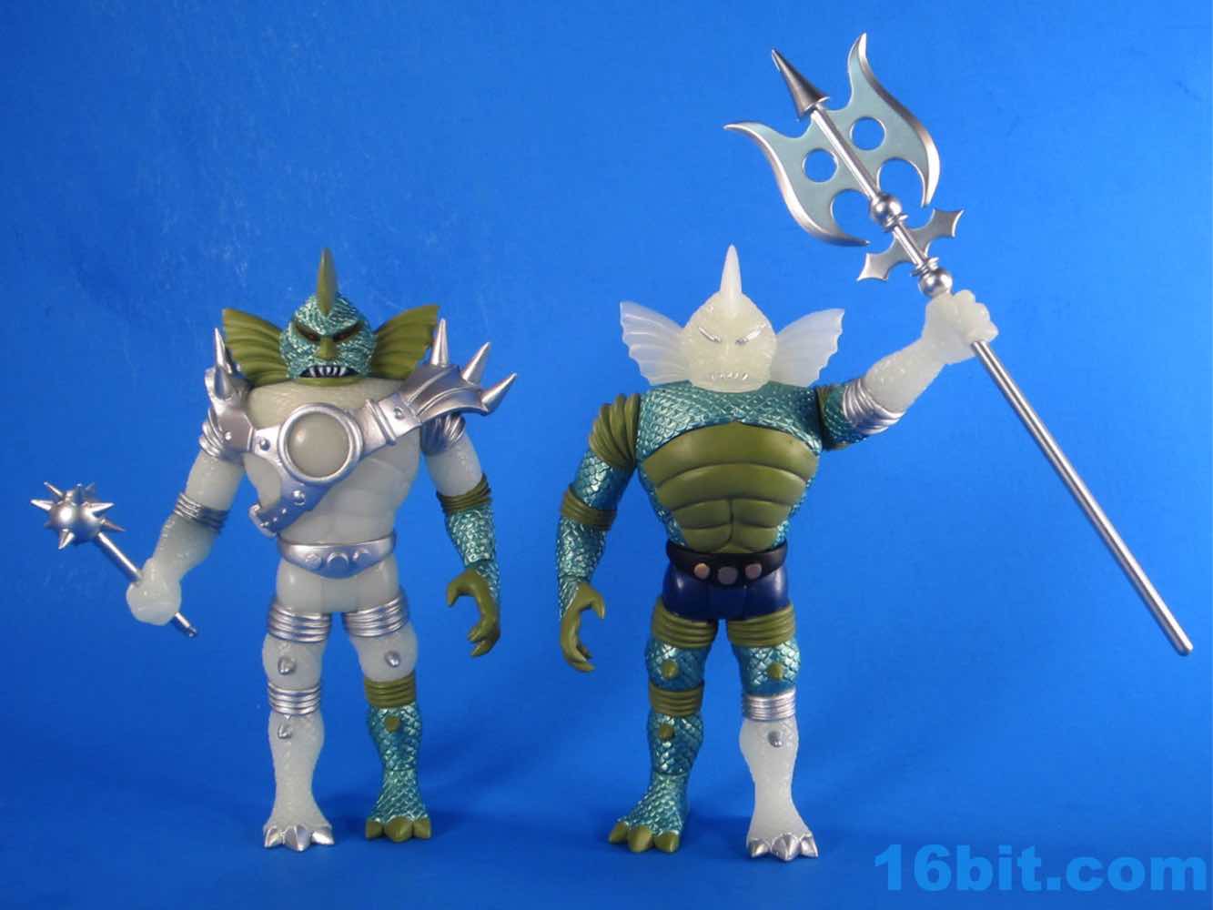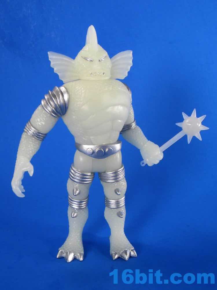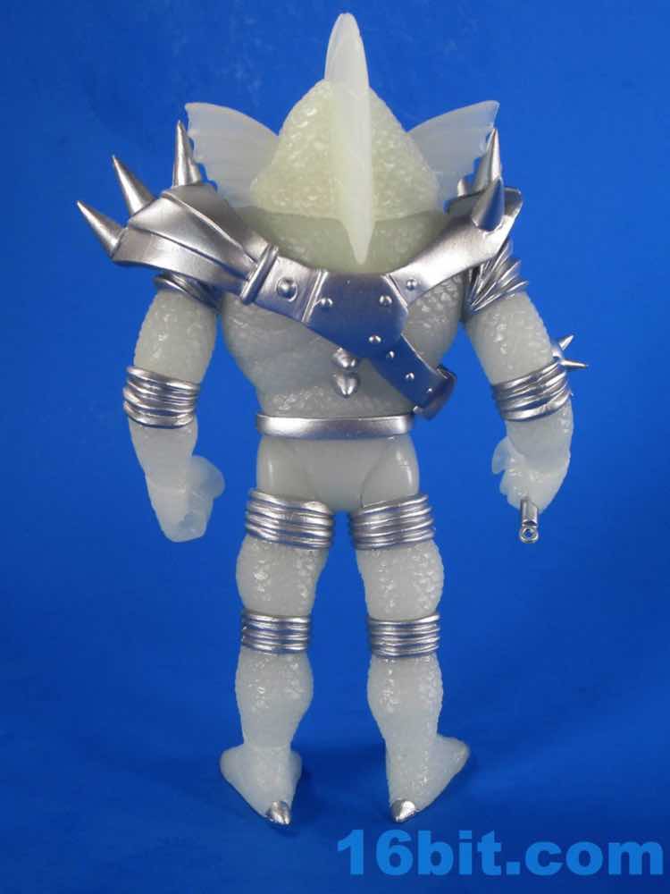 The figure seems to have the same sculpted detail as his siblings, with an astonishing quantity of sculpted scales that undoubtedly took days if not weeks of work to accomplish. On the recent Colossus Rex 2.0, the light metallic paint makes each scale pop to life even in a dark basement office. Glow in the dark paint is much crueler - it absorbs light in so many ways, meaning it's a bit tougher to see all the work that the The Outer Space Men, LLC put in to these sculpts from a few years ago. It's a lovely figure with amazing glowing power, and pigment changes everything. The most recent painted figure looked like a fish man jungle gladiator thanks to the shine, while this one looks like a ghostly monster. Fishman Junglegladiator, of course, was also Nick's aborted attempt to make an edgy cable show in the wake of Spongebob's fame. (This is a lie.)