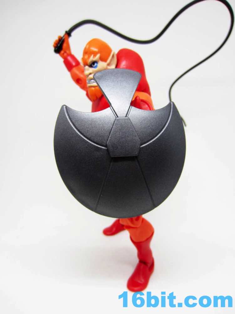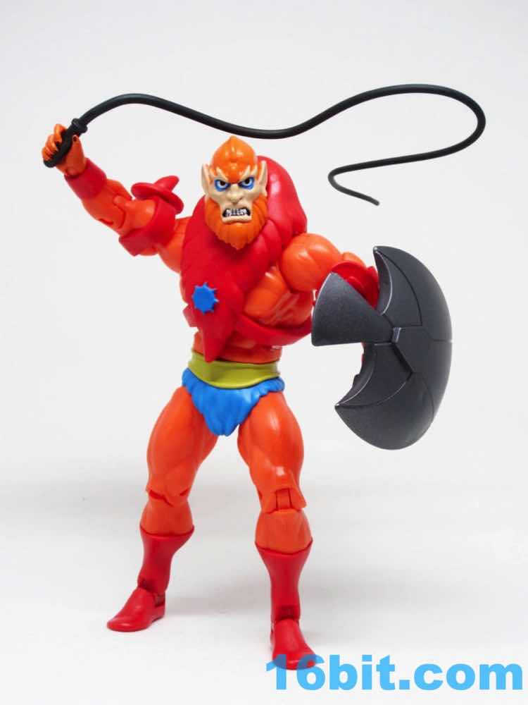 Frequently referred to as a mangy furball, Beast Man comes here without a heck of a lot of fur. The original animation model was an orange body with a minimal amount of hair - the head looked fuzzy, the mane looked sort of like a blob, and that's what the toy gets. He's got the bicep spikes (which are removable), and his roughly 30 points of articulation deliver what you probably want out of this flea-bitten henchman. He has no problems standing and waving his whip around, which fits in his hand without much problem. I hear some fists were a bit looser, but mine's just fine. The bend-and-swivel wrists are a nice touch, although I must say they don't do a load of good for carrying the shield. I don't know why the shield is here.