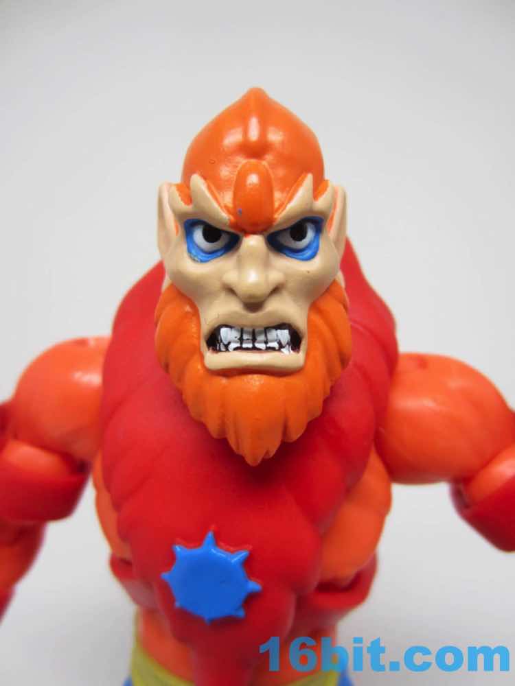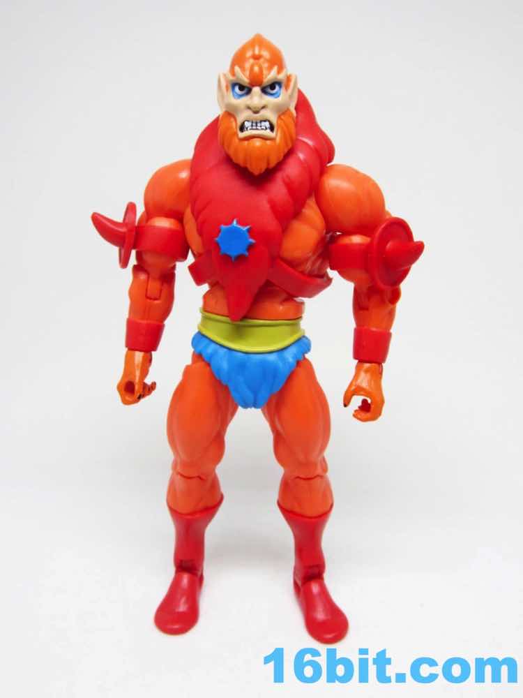 As far as coloring goes, it seems perfect. A bright orange fur body has a red set of boots, spikes, bracelets, and a sort of a harness deal around his chest. The blue furry shorts are present along with a yellow belt and a blue gem in his fur, for reasons I still don't know. Whatever, it looks like Beast Man! It's great!