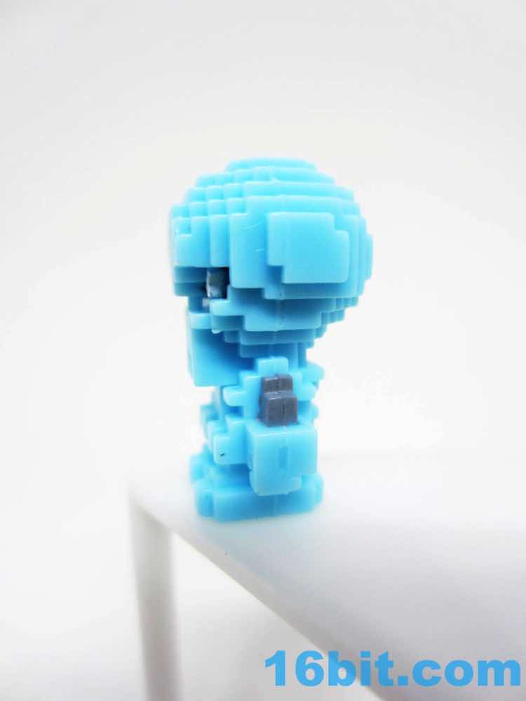 Big Pheyden and small Pheyden have white eyes surrounded by grey - the opposite of the normal Onell figures - with grey arms and shoulders. Everything else is bare blue, which is a smidgen more vibrant than the standard Pheyden figures I have around here. Maybe it's just by virtue of freshness - but it really looks sharp. Pixel figures are very "in" this season, so it's great to see them being adapted for Glyos. Unlike other Pheyden figures, this one is more of a collectible than a toy - he can't sit, he won't go into vehicles. He will, however, look super sharp on a desk or a shelf.