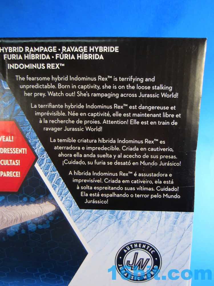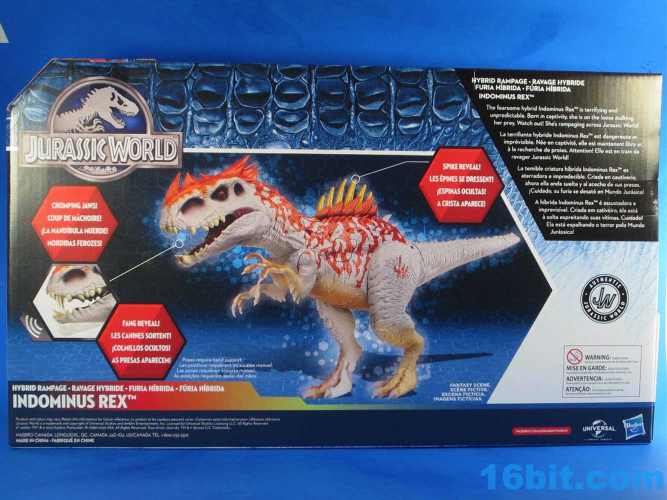 Do you love the ridiculous? I do. Already a hybrid in the movie - heck, that's the entire point - the beefed up Hybrid Rampage Indominus Rex is a new mold with even more Chaos Effect-inspired craziness. It's big, it's opaque, and it has a lot of orange. Oh, and snake fangs. And spikes that pop out of his back, after the ridges split apart so they can come out. It makes no sense whatsoever. Other toys just have more spikes, or slide-out spikes that retract, and while those were goofy they would make some degree of sense on a movie creature design. Flip-down walls of plates? Nope. This is crazy. When I saw it at Toy Fair, my reaction was "That's bonkers, I'm buying it and this entire line." Now that I have the final toy in my hands, I am largely not disappointed. She has problems standing, but so do all the big Jurassic World toys, unfortunately.
