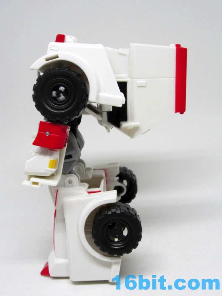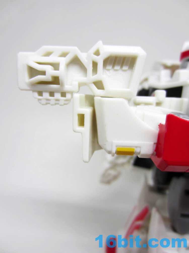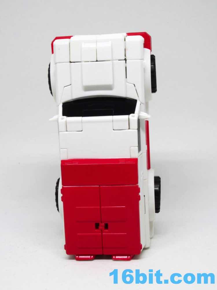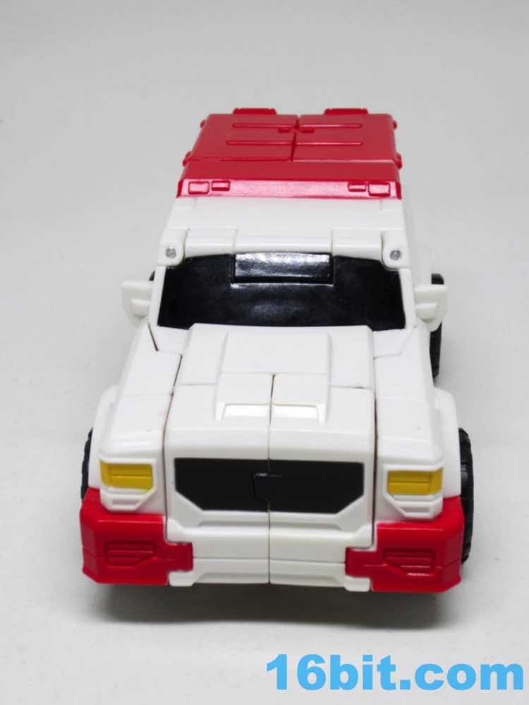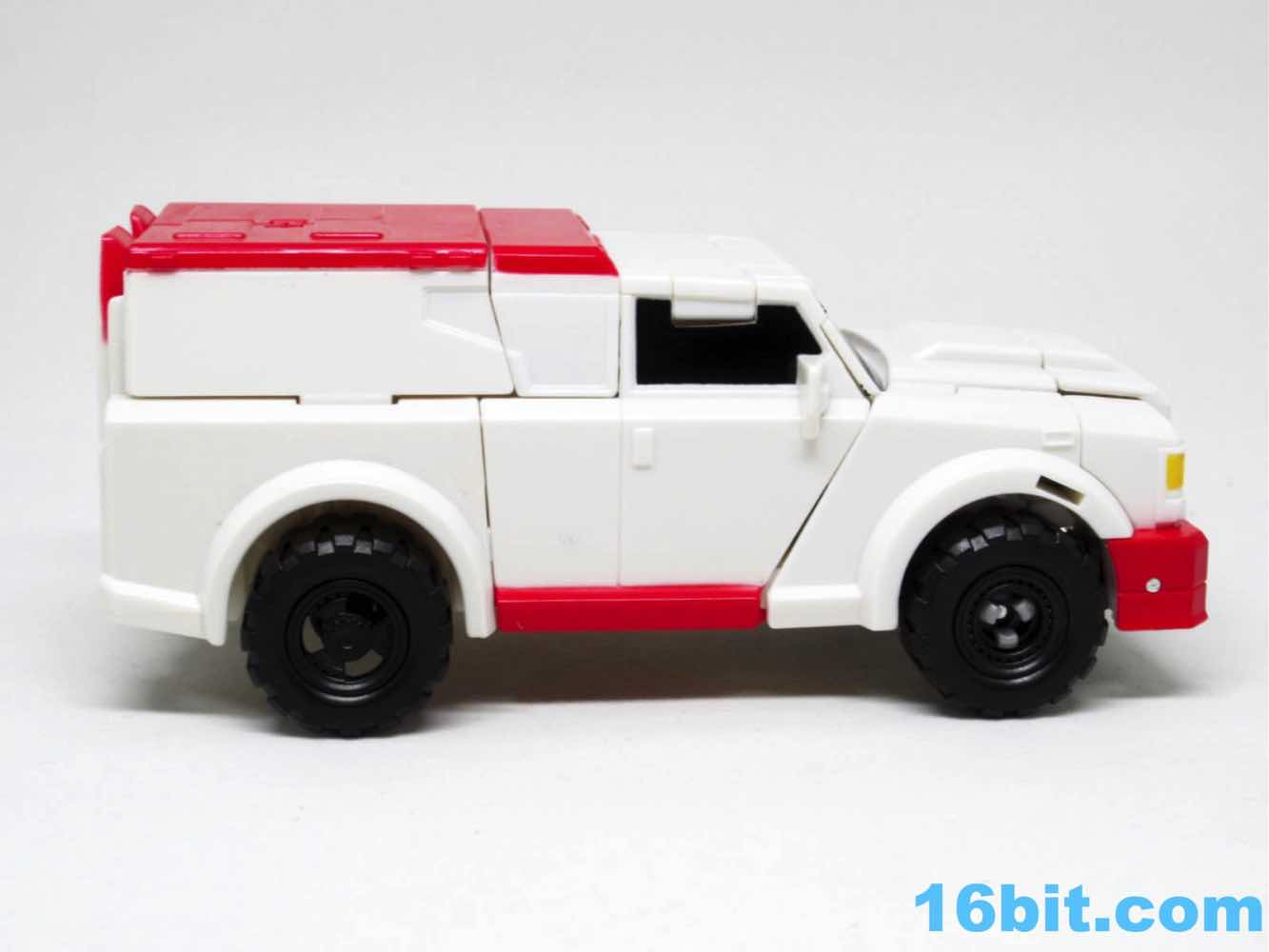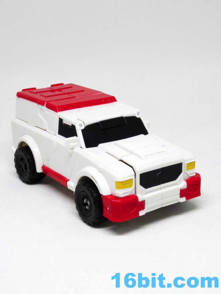 As an emergency medical vehicle, it does the job. It's red, it's white. It rolls, more or less. The Warrior-class toys - indeed, much of this line - doesn't do much with the alt modes. They just merely are. I assume it's a cost-cutting measure as of late, as it gets us back to the core mechanic of the toys while eschewing such niceties as rocket launchers and painted wheels. It works. It does what it advertises.