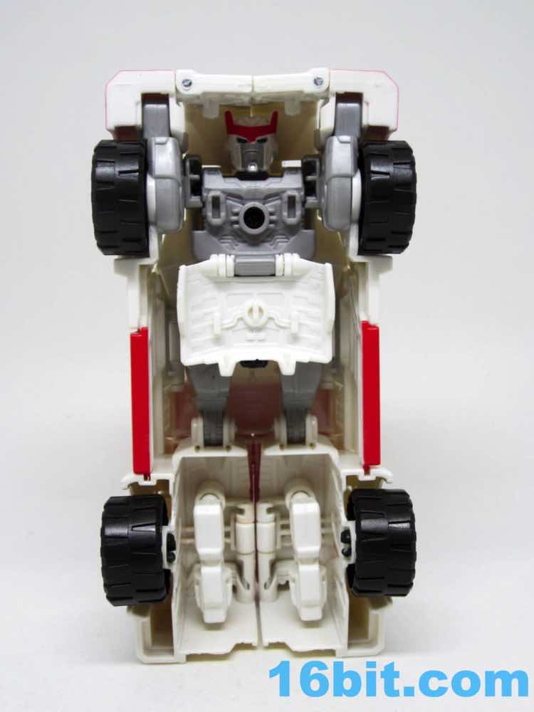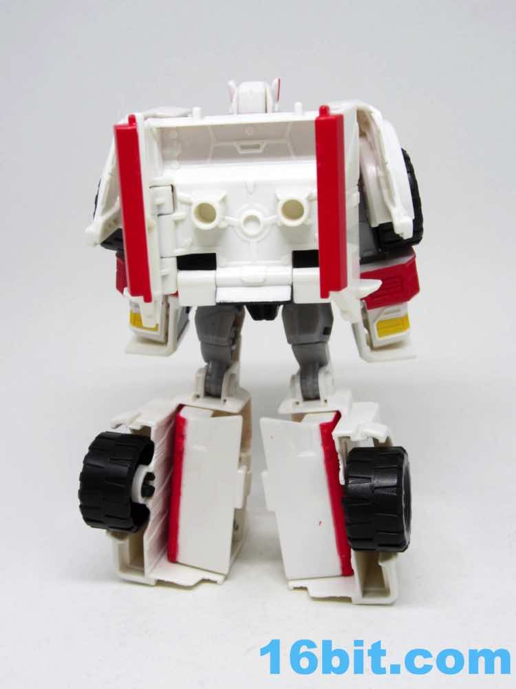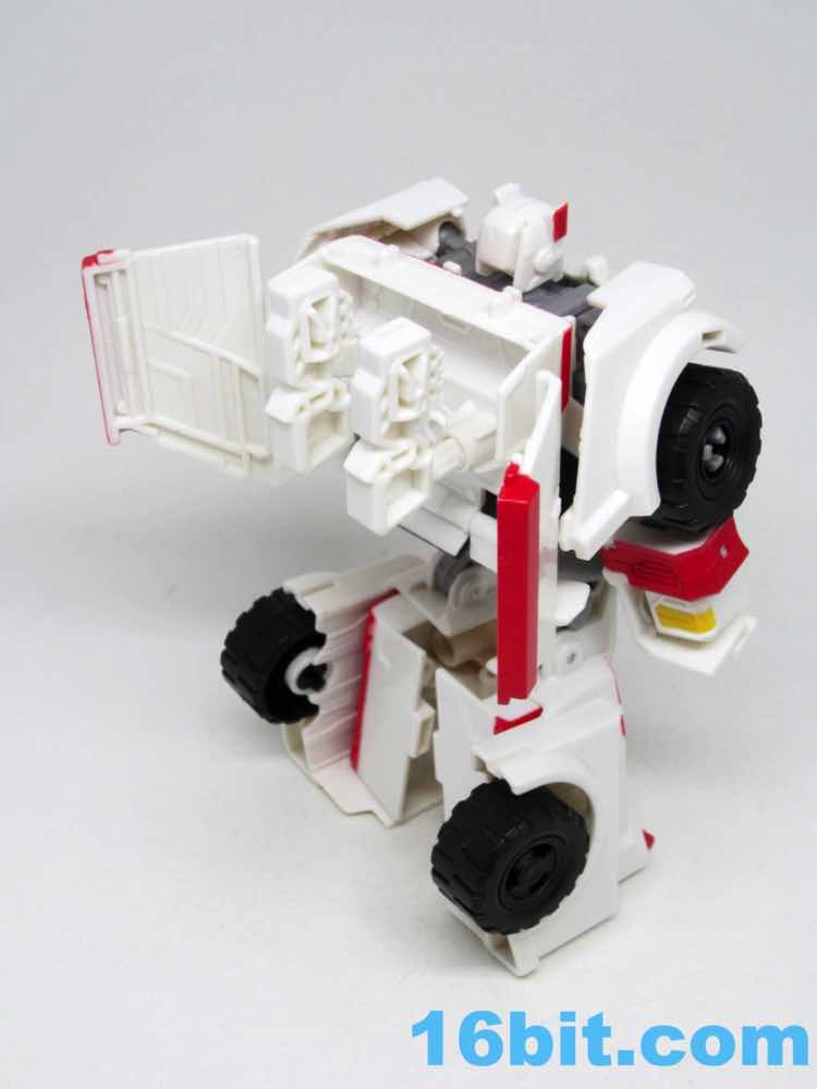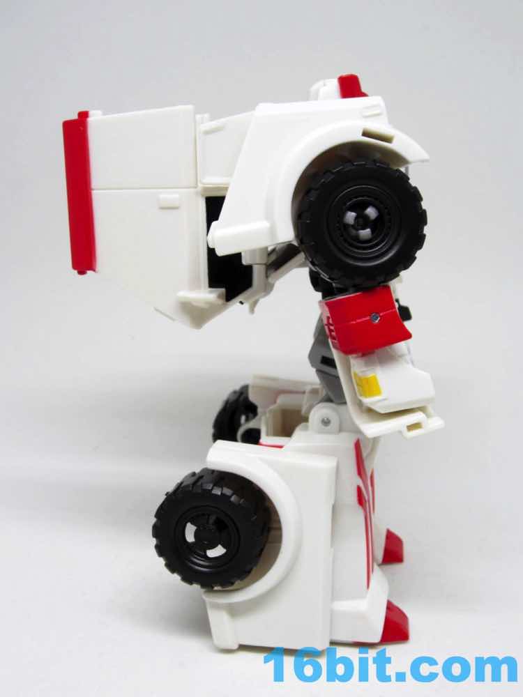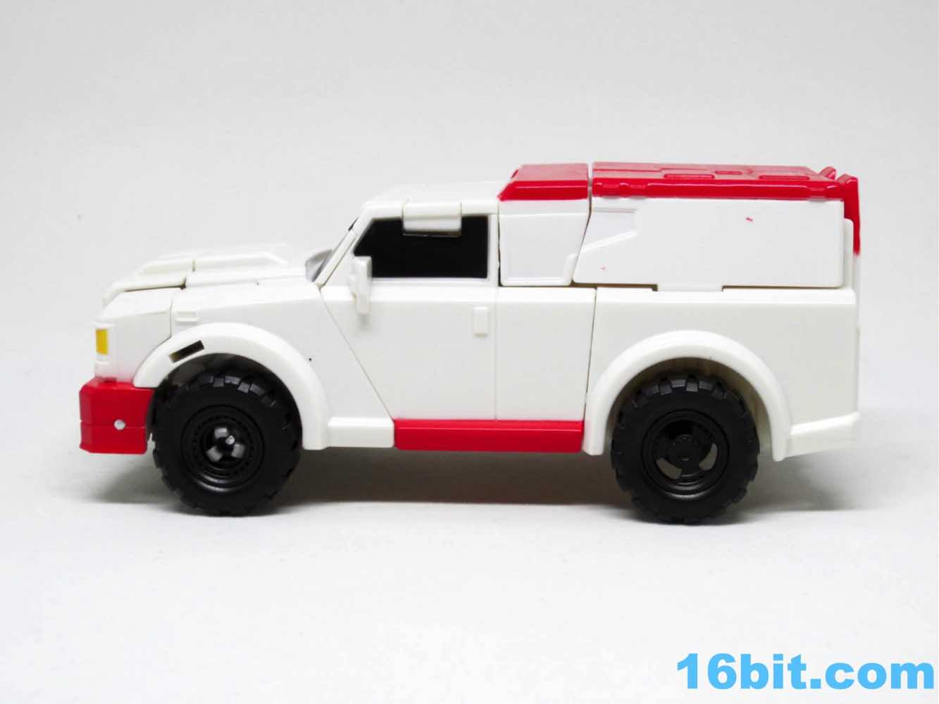 As an emergency medical vehicle, it does the job. It's red, it's white. It rolls, more or less. The Warrior-class toys - indeed, much of this line - doesn't do much with the alt modes. They just merely are. I assume it's a cost-cutting measure as of late, as it gets us back to the core mechanic of the toys while eschewing such niceties as rocket launchers and painted wheels. It works. It does what it advertises.