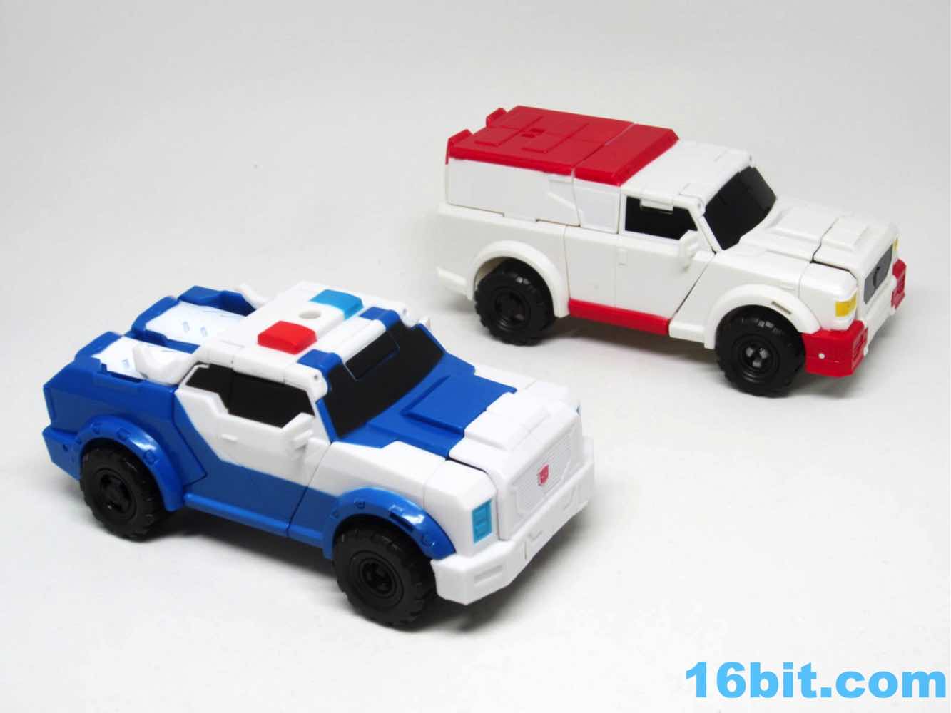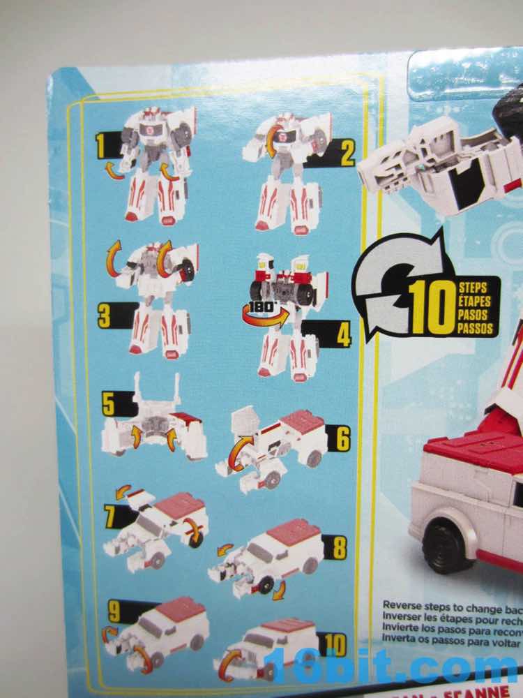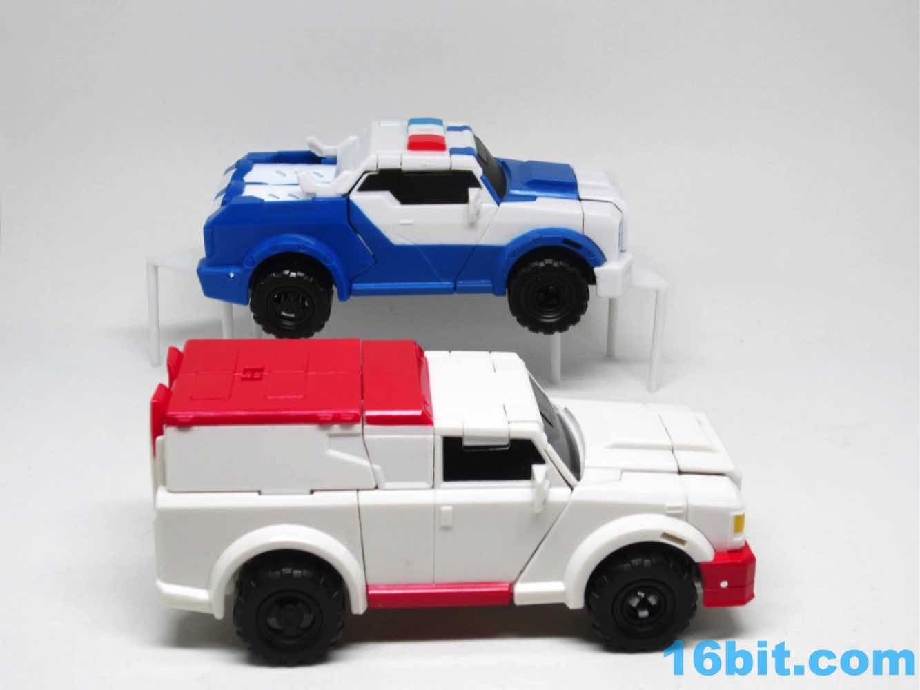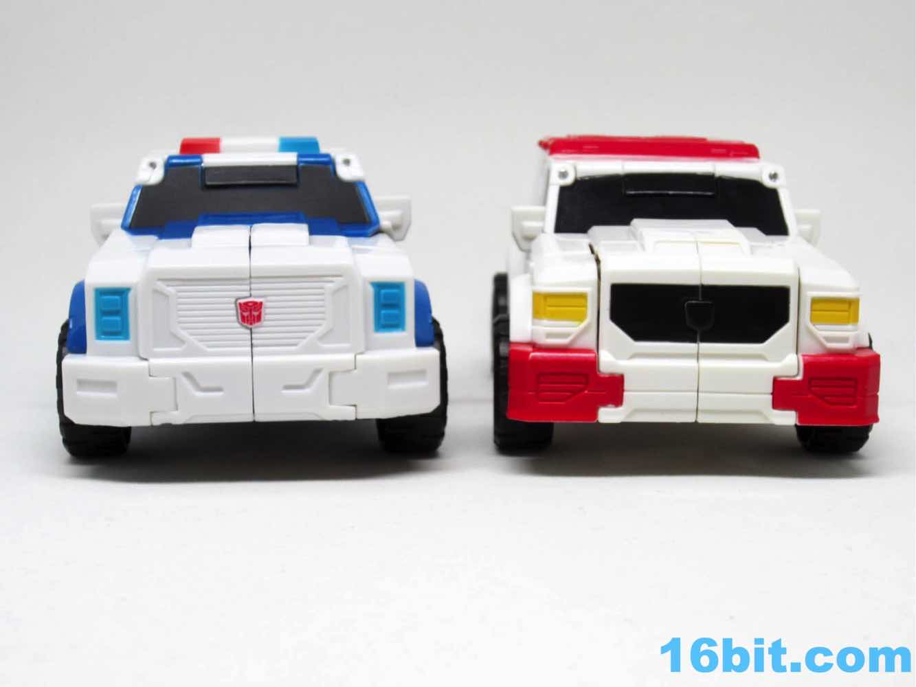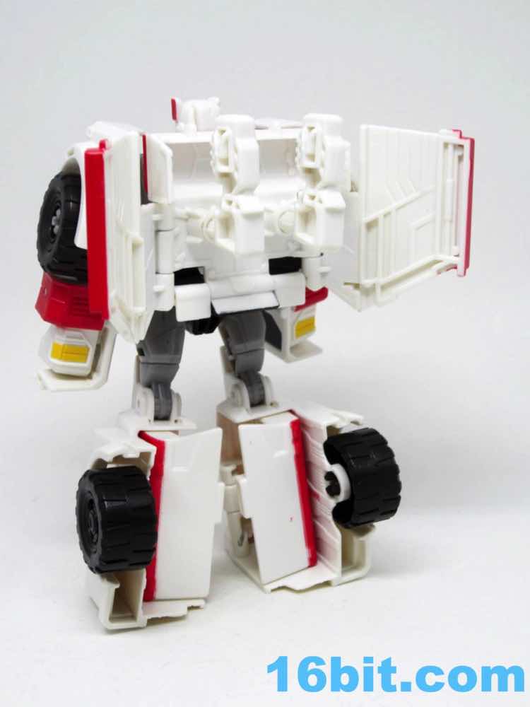 As an emergency medical vehicle, it does the job. It's red, it's white. It rolls, more or less. The Warrior-class toys - indeed, much of this line - doesn't do much with the alt modes. They just merely are. I assume it's a cost-cutting measure as of late, as it gets us back to the core mechanic of the toys while eschewing such niceties as rocket launchers and painted wheels. It works. It does what it advertises.