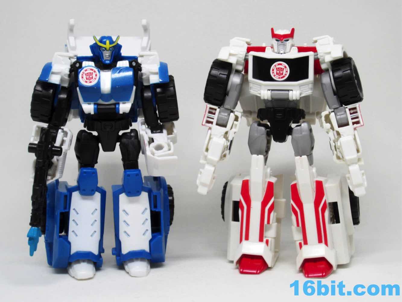 If you can transform Strongarm, you can transform Ratchet. The vehicles and robots are strikingly similar, but some of the interior bits are shared (or seemingly shared). The lower waist, thighs, parts of the torso, shoulders, and elbows all seem to be cut from the same cloth. Given the car shell and various legs, fists, and head look nothing alike it's quite remarkable to see how Hasbro succeeded in making a male and a female robot out of the same engineering. Kudos. I should note, there are some differences in how the legs work - Ratchet doesn't have articulation in his foot, for example - but it's darned close.