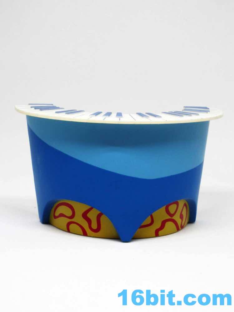 I was disappointed with the antenna when I first got it. I still am. They're not exactly posable, and they seem to curl around one another. It's annoying. Maybe you've found a better way to handle them than I have. If nothing else, they're not a huge distraction when you have the giant, colorful piano in front of the figure. As a makeshift display stand, it's fantastic - the keys are painted nicely, the lines between keys were surprisingly filled in, and the coloring closely matches the show. Right down to the blobby red squiggles in the yellow underneath, this sizable 6-inch wide instrument was impressive then and it's impressive now. Sure, it's not the full donut-esque circle which enclosed him on the show but getting the big gear in the packaging was a challenge. Space Ghost's desk was inverted and hidden behind him on his, and Zorak's went through the same thing. Getting the figure and the accessory in the already hefty bubble required some gymnastics.